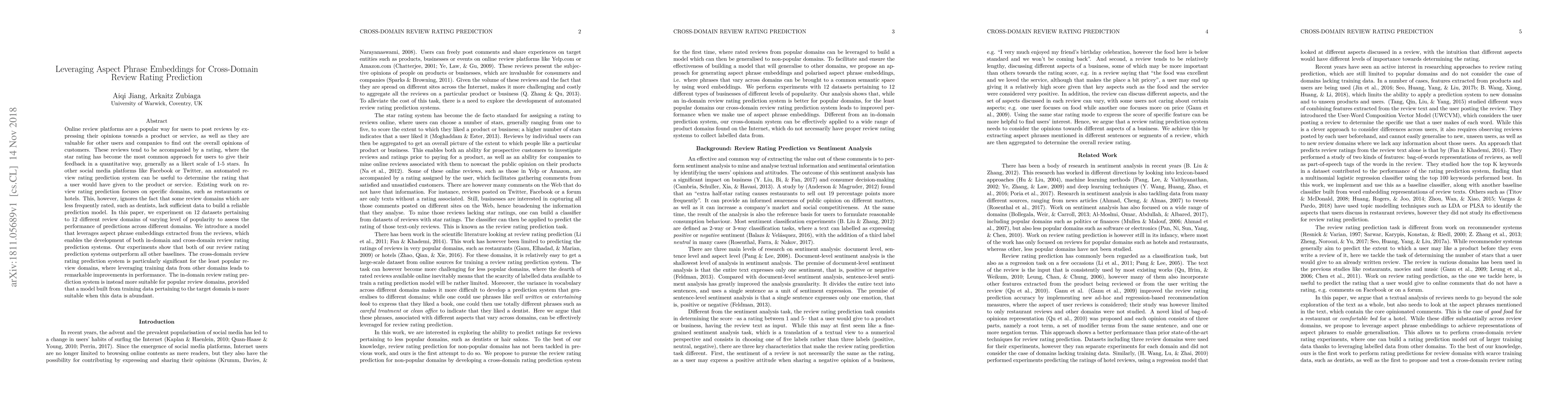 This paper proposes a model using aspect phrase embeddings to improve both in-domain and cross-domain review rating predictions across 12 diverse review domains. The cross-domain system notably enhances performance for less popular domains by leveraging data from other domains, while the in-domain system is more effective for popular domains with abundant data.