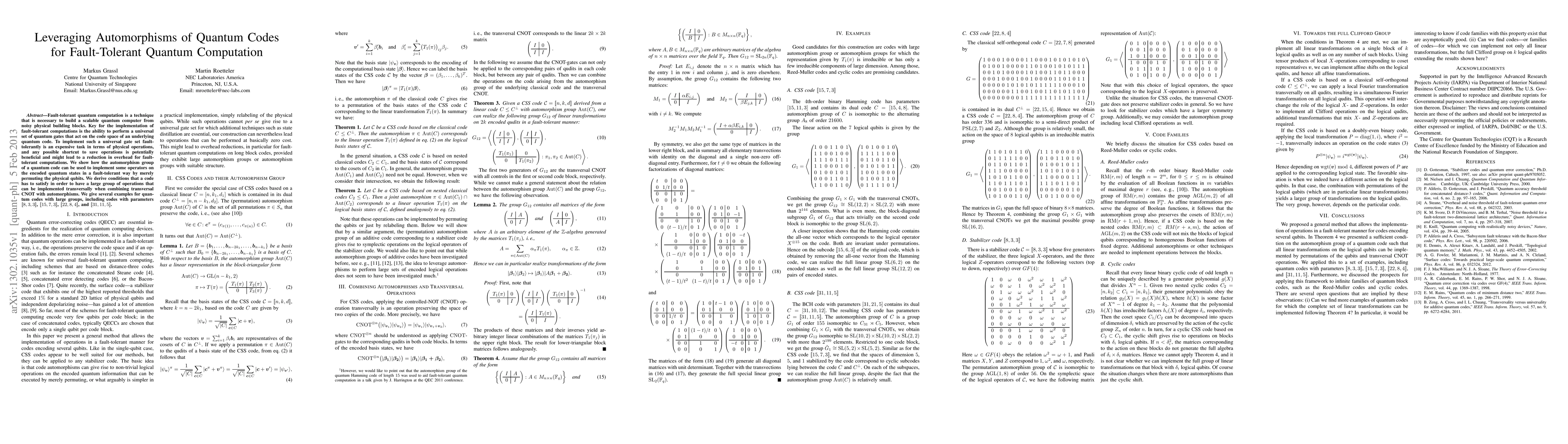 Fault-tolerant quantum computation is a technique that is necessary to build a scalable quantum computer from noisy physical building blocks. Key for the implementation of fault-tolerant computations is the ability to perform a universal set of quantum gates that act on the code space of an underlying quantum code. To implement such a universal gate set fault-tolerantly is an expensive task in terms of physical operations, and any possible shortcut to save operations is potentially beneficial and might lead to a reduction in overhead for fault-tolerant computations. We show how the automorphism group of a quantum code can be used to implement some operators on the encoded quantum states in a fault-tolerant way by merely permuting the physical qubits. We derive conditions that a code has to satisfy in order to have a large group of operations that can be implemented transversally when combining transversal CNOT with automorphisms. We give several examples for quantum codes with large groups, including codes with parameters [[8,3,3]], [[15,7,3]], [[22,8,4]], and [[31,11,5]].