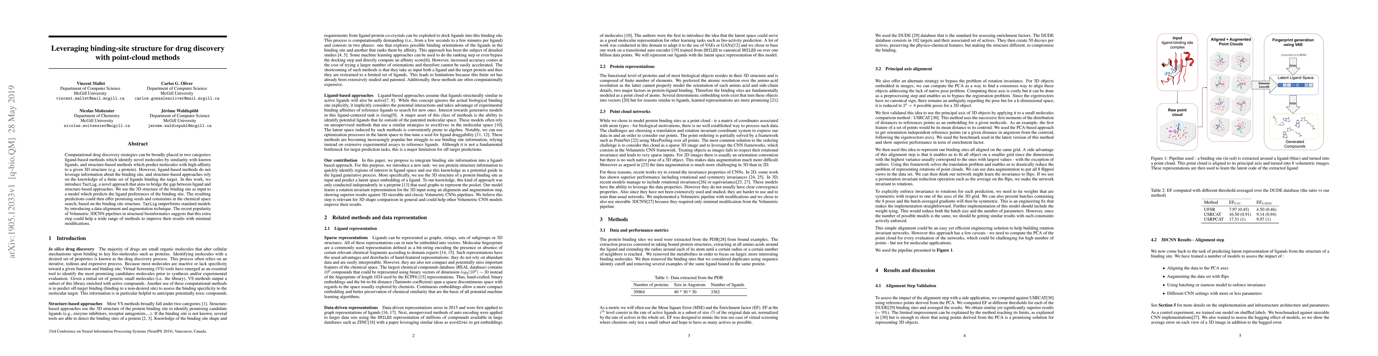 Computational drug discovery strategies can be broadly placed in two categories: ligand-based methods which identify novel molecules by similarity with known ligands, and structure-based methods which predict molecules with high-affinity to a given 3D structure (e.g. a protein). However, ligand-based methods do not leverage information about the binding site, and structure-based approaches rely on the knowledge of a finite set of ligands binding the target. In this work, we introduce TarLig, a novel approach that aims to bridge the gap between ligand and structure-based approaches. We use the 3D structure of the binding site as input to a model which predicts the ligand preferences of the binding site. The resulting predictions could then offer promising seeds and constraints in the chemical space search, based on the binding site structure. TarLig outperforms standard models by introducing a data-alignment and augmentation technique. The recent popularity of Volumetric 3DCNN pipelines in structural bioinformatics suggests that this extra step could help a wide range of methods to improve their results with minimal modifications.