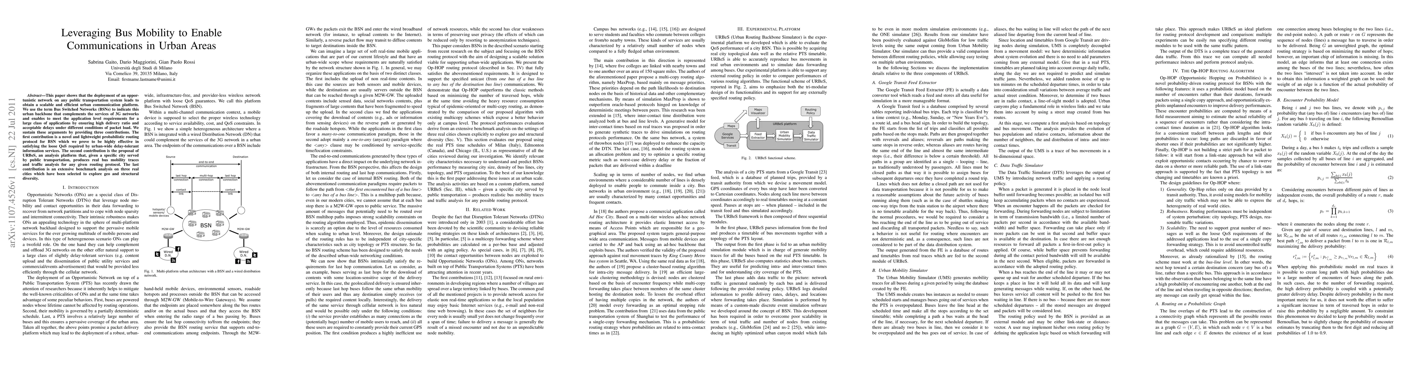 This paper proposes leveraging bus mobility to create a scalable urban communication platform, achieving high delivery ratios and acceptable delays through a novel probabilistic routing protocol and real-time traffic analysis.