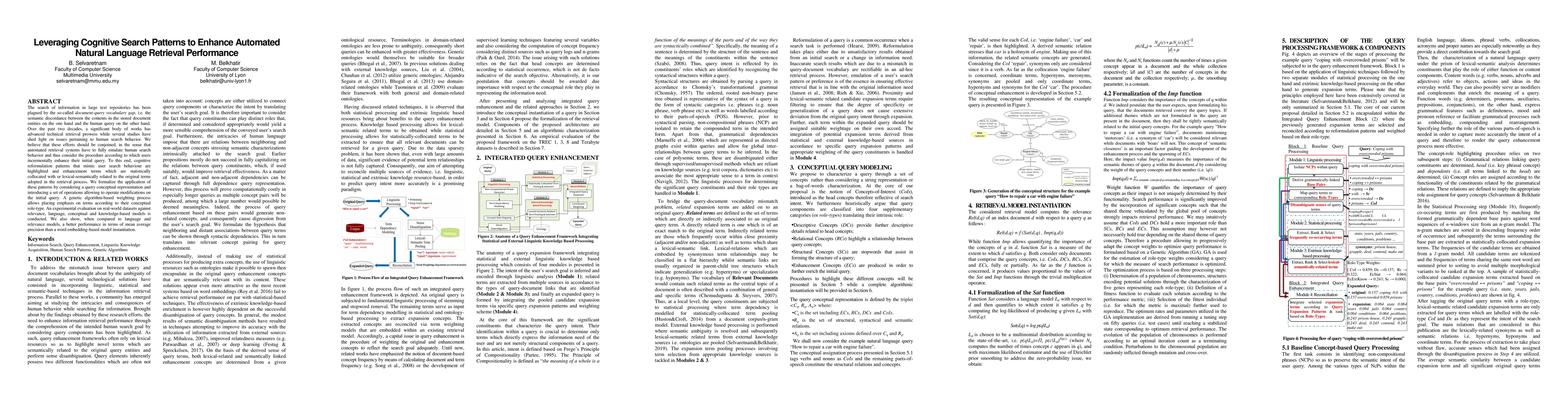 A new approach to automated natural language retrieval enhances performance by emulating human search behavior through cognitive reformulation patterns and statistical term enhancement. It outperforms existing models in terms of mean average precision.