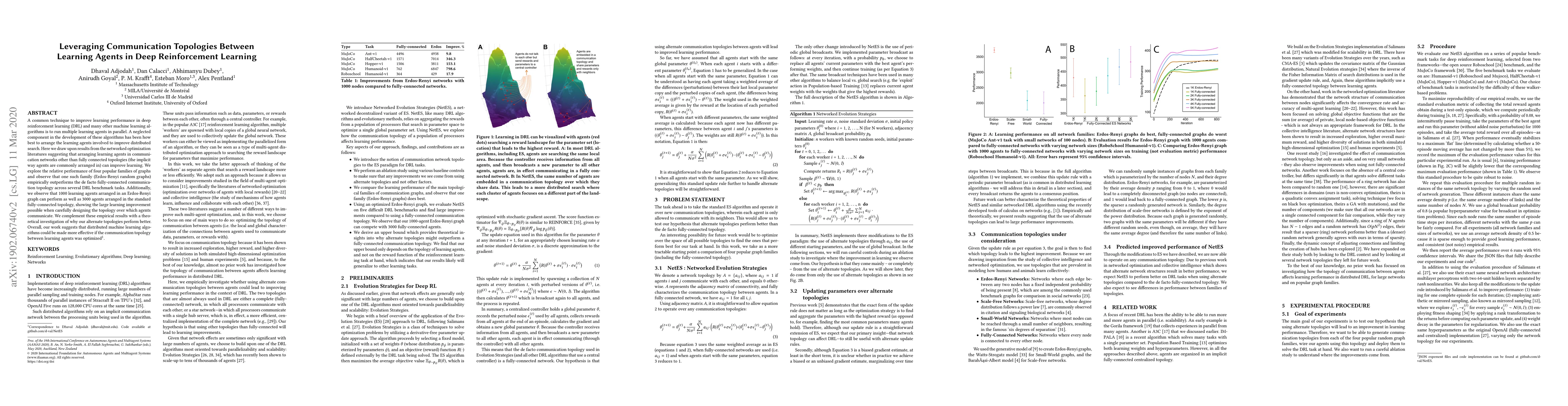 Researchers found that optimizing communication topologies between learning agents in deep reinforcement learning improves performance, and a specific graph topology (Erdos-Renyi random graphs) outperforms traditional fully-connected topologies.