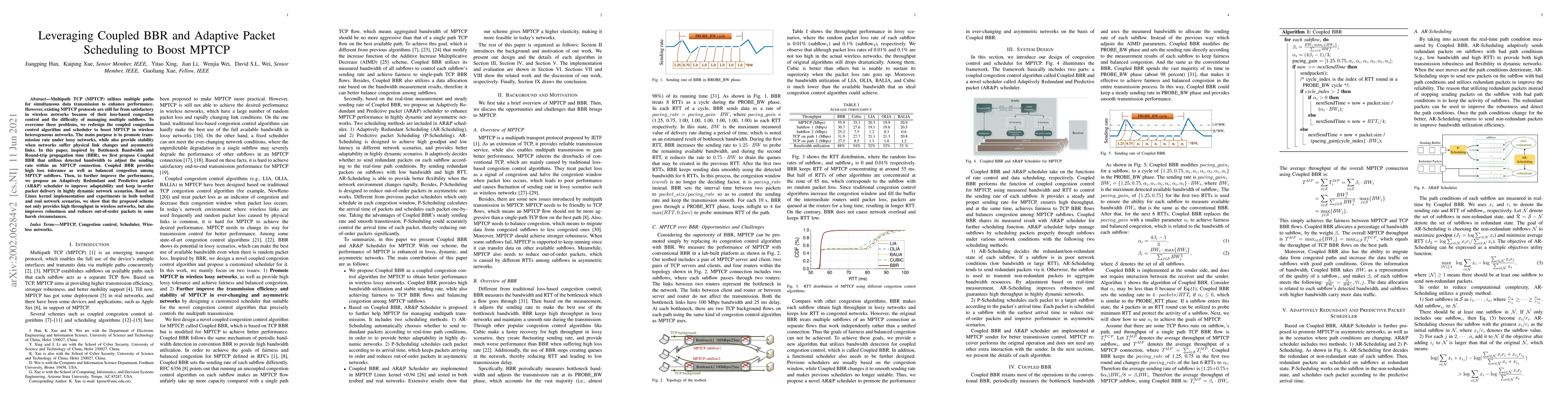 This paper proposes Coupled BBR, a congestion control algorithm for Multipath TCP (MPTCP), and an Adaptively Redundant and Packet-by-Packet (AR&P) scheduler to enhance MPTCP performance in lossy networks. The results show improved throughput, robustness, and reduced out-of-order packets compared to traditional MPTCP protocols.