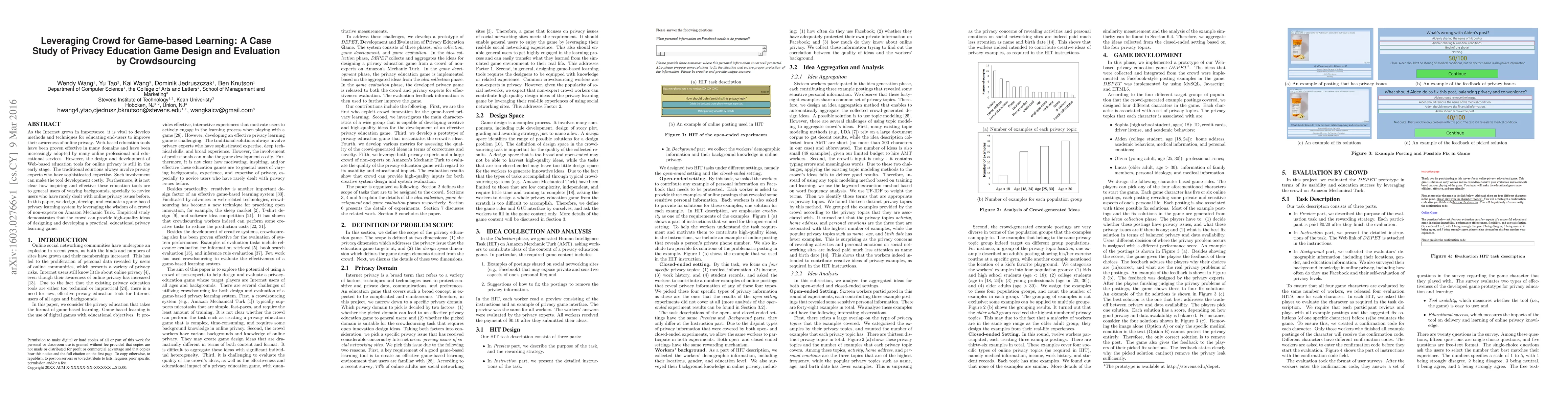 This paper explores using Amazon Mechanical Turk to crowdsource the design and evaluation of a game-based privacy education tool, demonstrating that non-experts can generate high-quality ideas for effective online privacy learning. The study highlights the potential for cost-effective development of privacy education tools without relying solely on privacy experts.