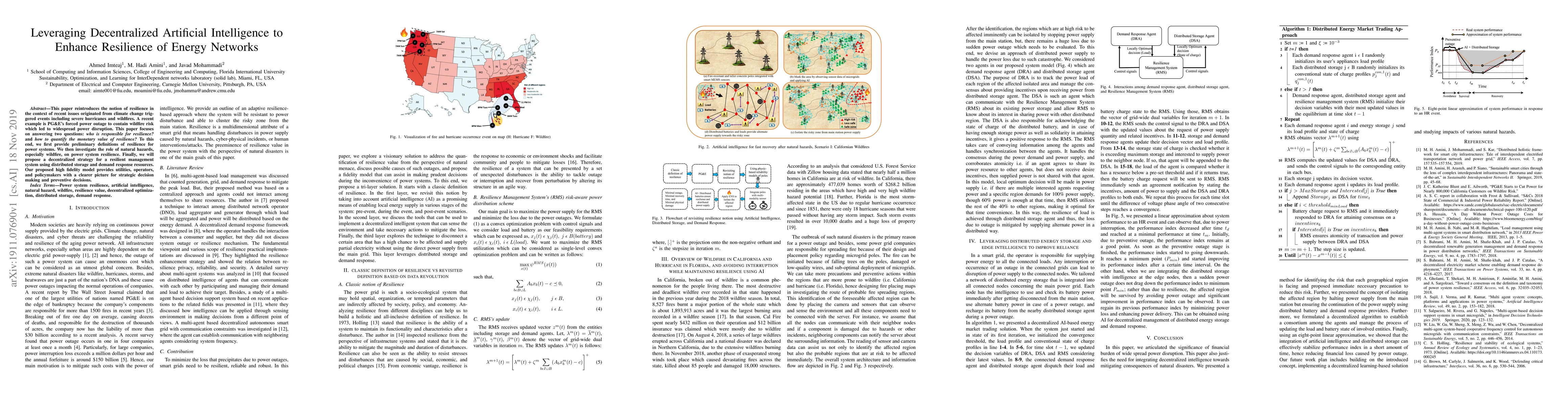 This paper reintroduces the notion of resilience in the context of recent issues originated from climate change triggered events including severe hurricanes and wildfires. A recent example is PG&E's forced power outage to contain wildfire risk which led to widespread power disruption. This paper focuses on answering two questions: who is responsible for resilience? and how to quantify the monetary value of resilience? To this end, we first provide preliminary definitions of resilience for power systems. We then investigate the role of natural hazards, especially wildfire, on power system resilience. Finally, we will propose a decentralized strategy for a resilient management system using distributed storage and demand response resources. Our proposed high fidelity model provides utilities, operators, and policymakers with a clearer picture for strategic decision making and preventive decisions.