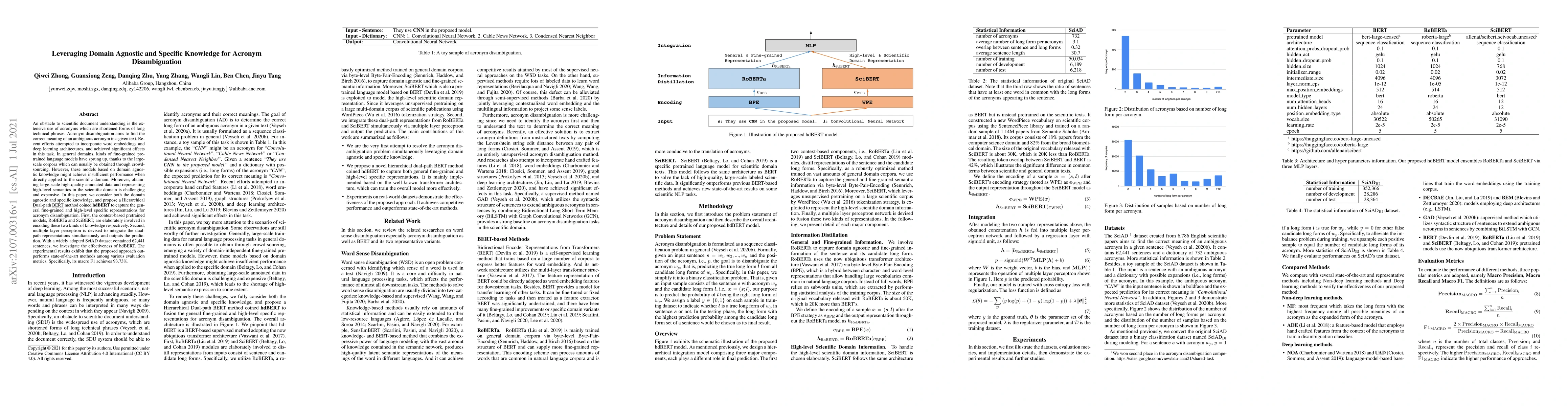 This paper proposes a Hierarchical Dual-path BERT method (hdBERT) to enhance acronym disambiguation in scientific texts by leveraging both domain agnostic and specific knowledge. The method integrates context-based pretrained models like RoBERTa and SciBERT, and outperforms state-of-the-art methods, achieving a macro F1 score of 93.73% on the SciAD dataset.