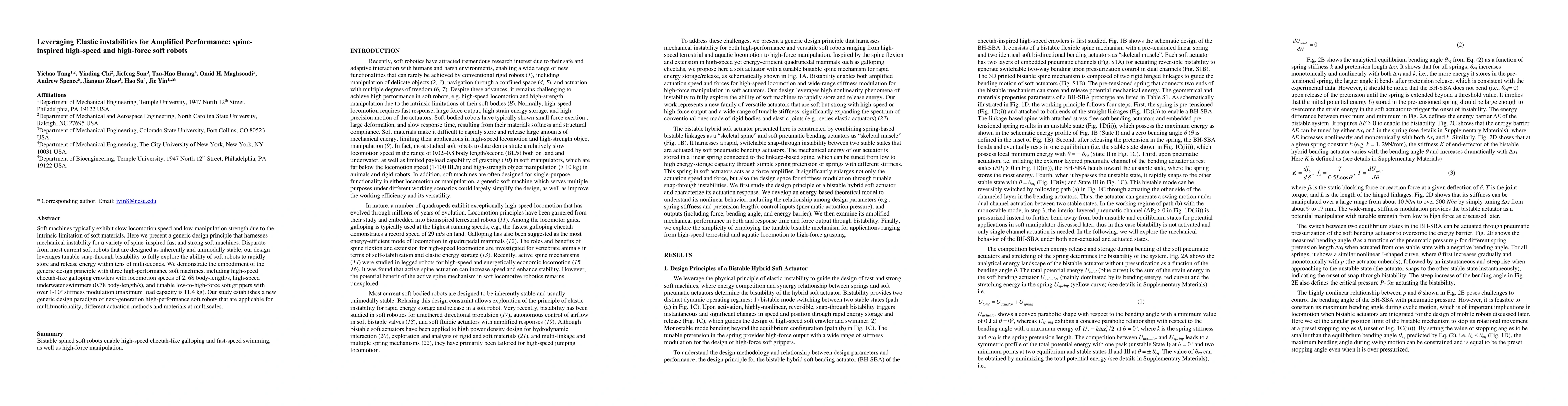 Soft machines typically exhibit slow locomotion speed and low manipulation strength because of intrinsic limitations of soft materials. Here, we present a generic design principle that harnesses mechanical instability for a variety of spine-inspired fast and strong soft machines. Unlike most current soft robots that are designed as inherently and unimodally stable, our design leverages tunable snap-through bistability to fully explore the ability of soft robots to rapidly store and release energy within tens of milliseconds. We demonstrate this generic design principle with three high-performance soft machines: High-speed cheetah-like galloping crawlers with locomotion speeds of 2.68 body length/s, high-speed underwater swimmers (0.78 body length/s), and tunable low-to-high-force soft grippers with over 1 to 103 stiffness modulation (maximum load capacity is 11.4 kg). Our study establishes a new generic design paradigm of next-generation high-performance soft robots that are applicable for multifunctionality, different actuation methods, and materials at multiscales.