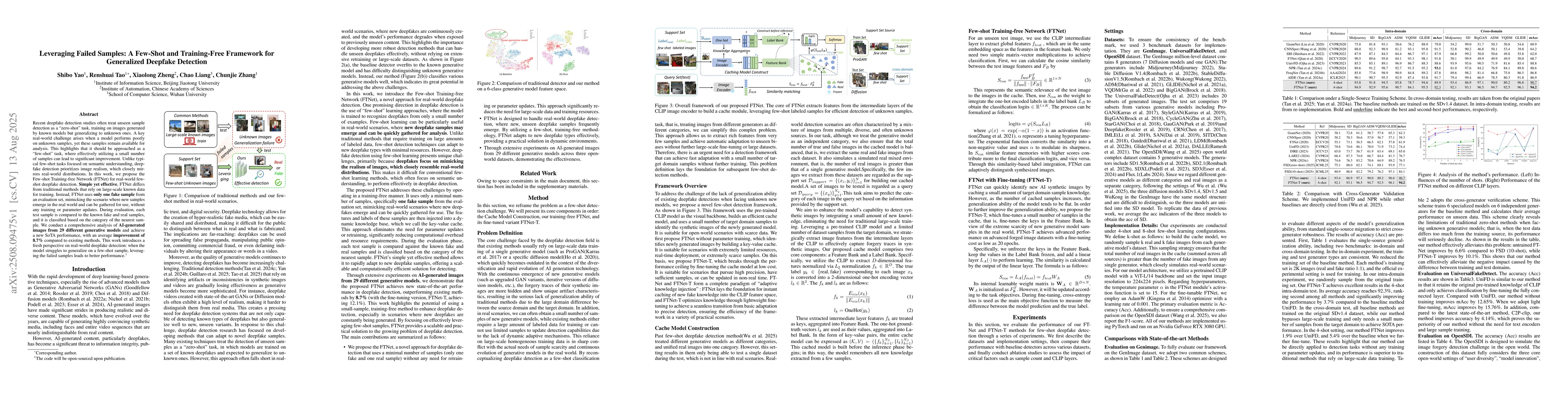 Recent deepfake detection studies often treat unseen sample detection as a ``zero-shot" task, training on images generated by known models but generalizing to unknown ones. A key real-world challenge arises when a model performs poorly on unknown samples, yet these samples remain available for analysis. This highlights that it should be approached as a ``few-shot" task, where effectively utilizing a small number of samples can lead to significant improvement. Unlike typical few-shot tasks focused on semantic understanding, deepfake detection prioritizes image realism, which closely mirrors real-world distributions. In this work, we propose the Few-shot Training-free Network (FTNet) for real-world few-shot deepfake detection. Simple yet effective, FTNet differs from traditional methods that rely on large-scale known data for training. Instead, FTNet uses only one fake samplefrom an evaluation set, mimicking the scenario where new samples emerge in the real world and can be gathered for use, without any training or parameter updates. During evaluation, each test sample is compared to the known fake and real samples, and it is classified based on the category of the nearest sample. We conduct a comprehensive analysis of AI-generated images from 29 different generative models and achieve a new SoTA performance, with an average improvement of 8.7\% compared to existing methods. This work introduces a fresh perspective on real-world deepfake detection: when the model struggles to generalize on a few-shot sample, leveraging the failed samples leads to better performance.