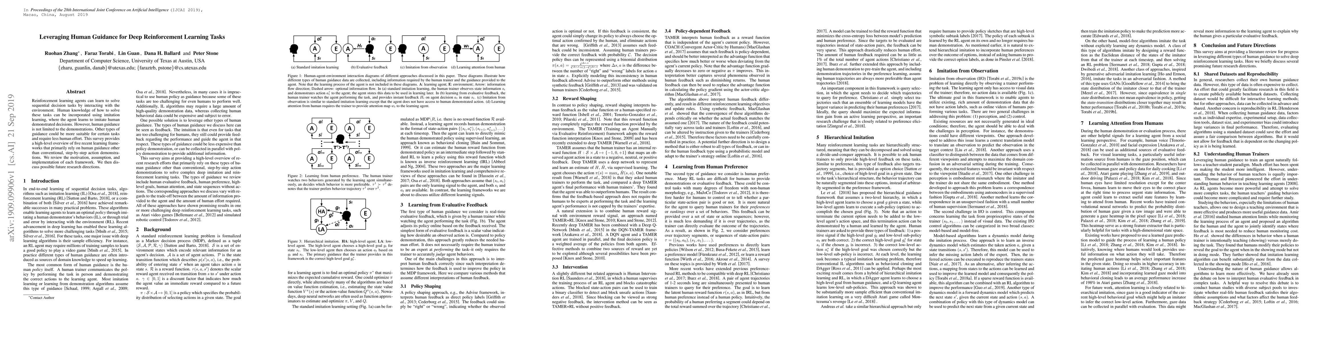 This paper surveys five recent frameworks for deep reinforcement learning that utilize human guidance beyond traditional imitation learning, reviewing their motivations, assumptions, and implementations, and discusses potential future research avenues.