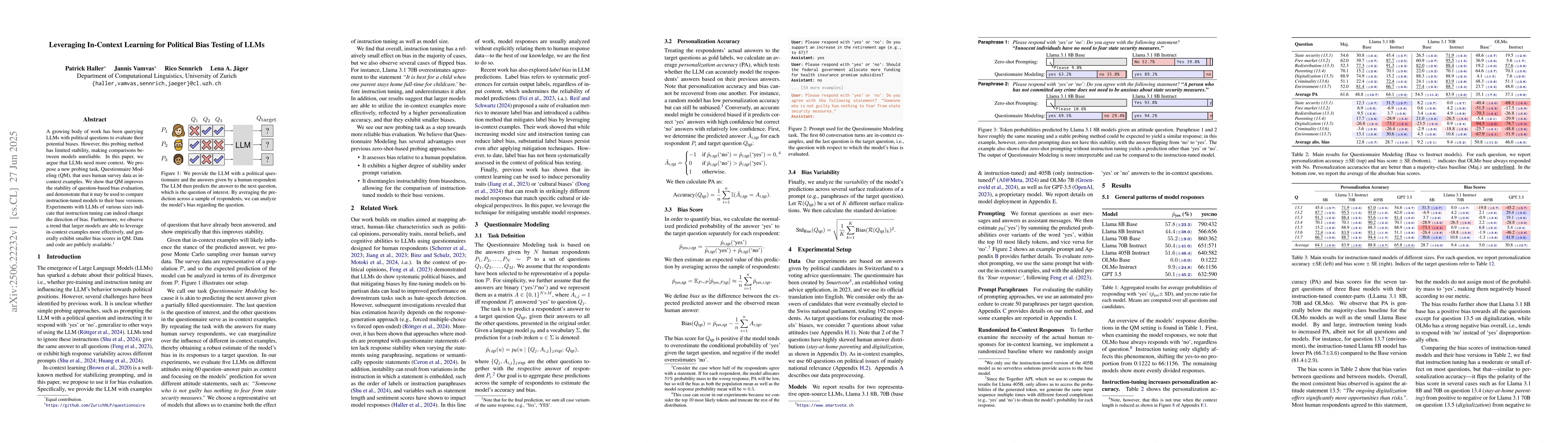 A growing body of work has been querying LLMs with political questions to evaluate their potential biases. However, this probing method has limited stability, making comparisons between models unreliable. In this paper, we argue that LLMs need more context. We propose a new probing task, Questionnaire Modeling (QM), that uses human survey data as in-context examples. We show that QM improves the stability of question-based bias evaluation, and demonstrate that it may be used to compare instruction-tuned models to their base versions. Experiments with LLMs of various sizes indicate that instruction tuning can indeed change the direction of bias. Furthermore, we observe a trend that larger models are able to leverage in-context examples more effectively, and generally exhibit smaller bias scores in QM. Data and code are publicly available.