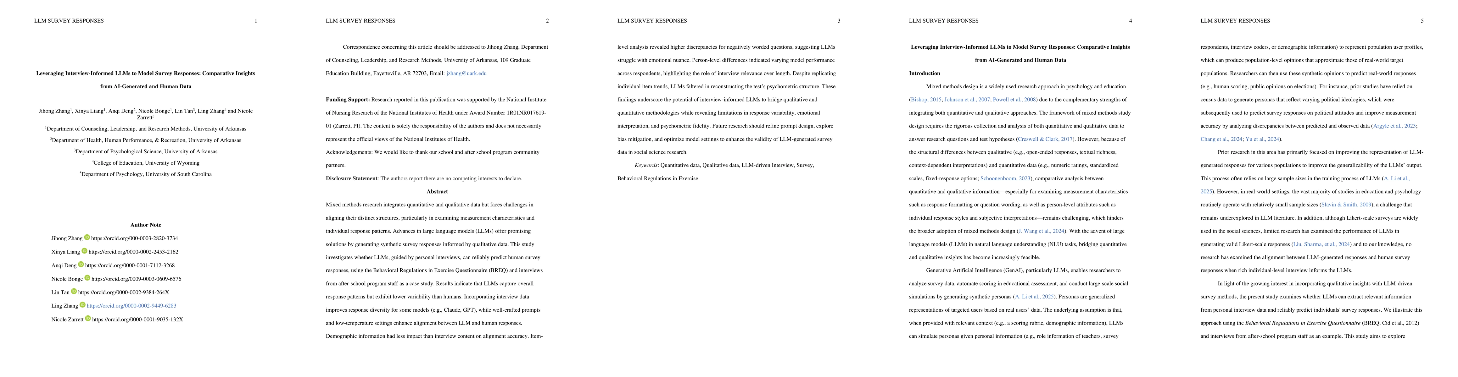 This research highlights the potential of interview-informed LLMs to bridge qualitative and quantitative methodologies in social science research, offering a novel approach to modeling survey responses with richer contextual information.