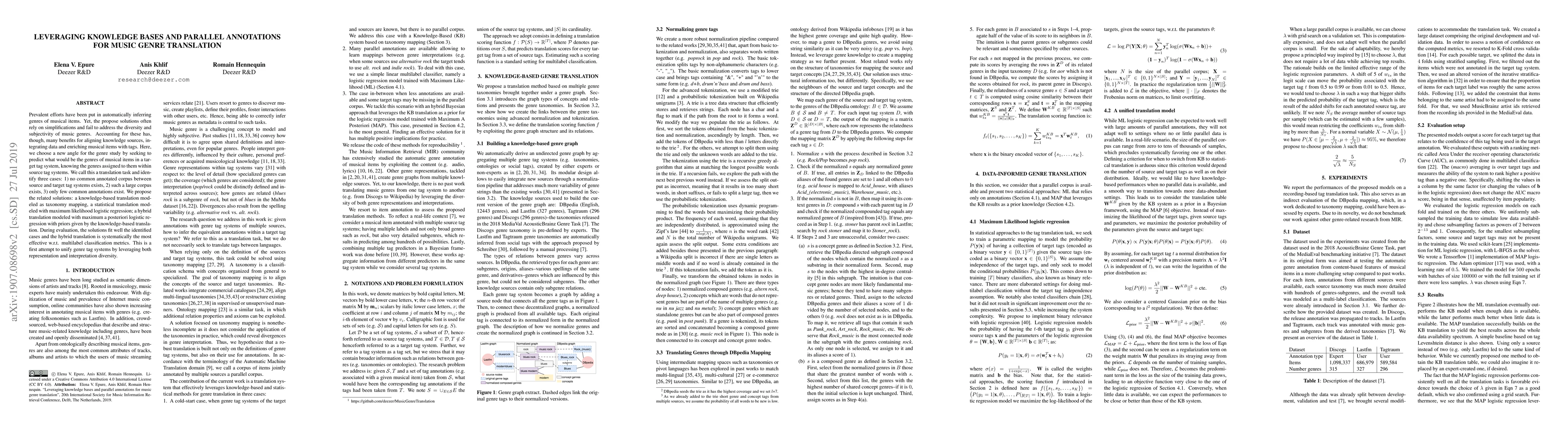 Prevalent efforts have been put in automatically inferring genres of musical items. Yet, the propose solutions often rely on simplifications and fail to address the diversity and subjectivity of music genres. Accounting for these has, though, many benefits for aligning knowledge sources, integrating data and enriching musical items with tags. Here, we choose a new angle for the genre study by seeking to predict what would be the genres of musical items in a target tag system, knowing the genres assigned to them within source tag systems. We call this a translation task and identify three cases: 1) no common annotated corpus between source and target tag systems exists, 2) such a large corpus exists, 3) only few common annotations exist. We propose the related solutions: a knowledge-based translation modeled as taxonomy mapping, a statistical translation modeled with maximum likelihood logistic regression; a hybrid translation modeled with maximum a posteriori logistic regression with priors given by the knowledge-based translation. During evaluation, the solutions fit well the identified cases and the hybrid translation is systematically the most effective w.r.t. multilabel classification metrics. This is a first attempt to unify genre tag systems by leveraging both representation and interpretation diversity.