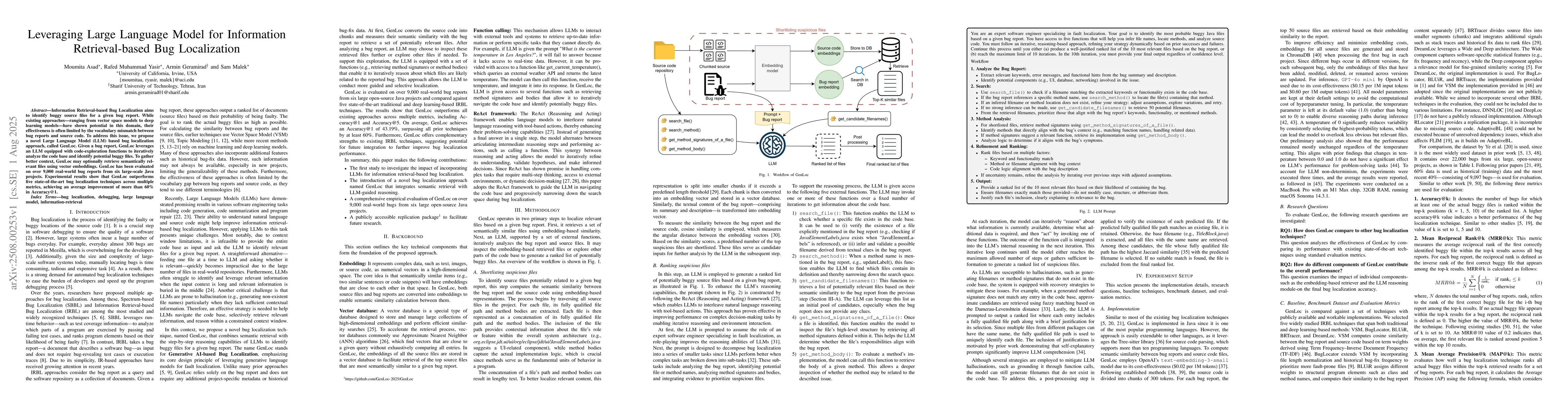 Information Retrieval-based Bug Localization aims to identify buggy source files for a given bug report. While existing approaches -- ranging from vector space models to deep learning models -- have shown potential in this domain, their effectiveness is often limited by the vocabulary mismatch between bug reports and source code. To address this issue, we propose a novel Large Language Model (LLM) based bug localization approach, called GenLoc. Given a bug report, GenLoc leverages an LLM equipped with code-exploration functions to iteratively analyze the code base and identify potential buggy files. To gather better context, GenLoc may optionally retrieve semantically relevant files using vector embeddings. GenLoc has been evaluated on over 9,000 real-world bug reports from six large-scale Java projects. Experimental results show that GenLoc outperforms five state-of-the-art bug localization techniques across multiple metrics, achieving an average improvement of more than 60\% in Accuracy@1.
