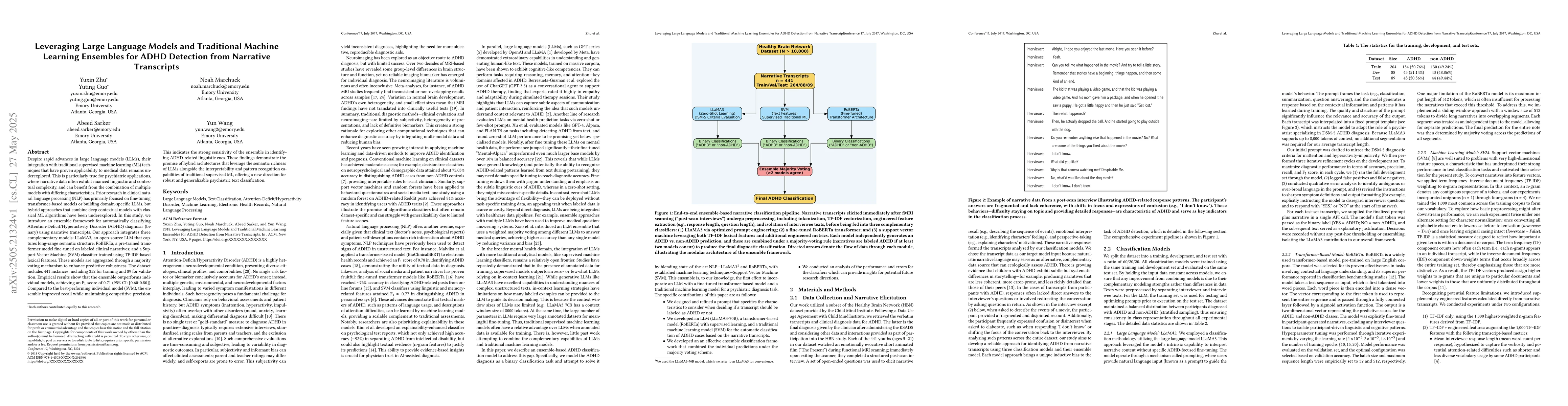 The paper presents an ensemble framework that effectively combines large language models (LLMs), transformer models, and traditional ML techniques for ADHD detection from narrative transcripts.