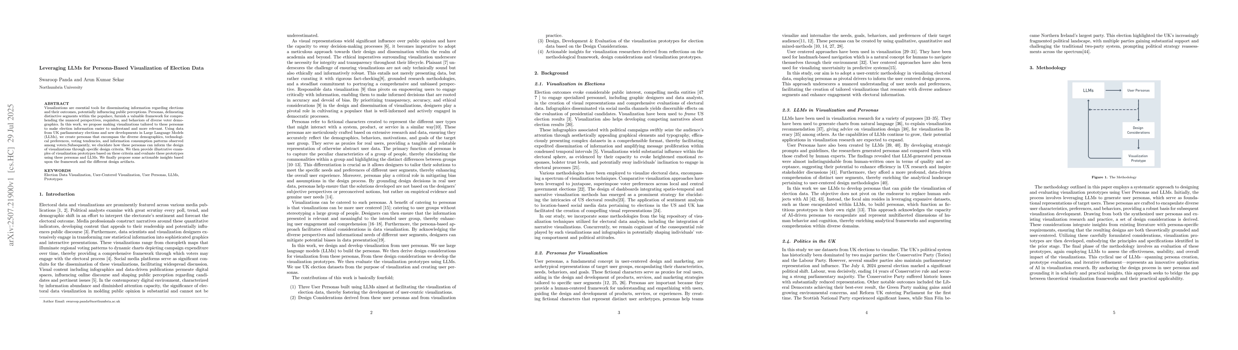 Visualizations are essential tools for disseminating information regarding elections and their outcomes, potentially influencing public perceptions. Personas, delineating distinctive segments within the populace, furnish a valuable framework for comprehending the nuanced perspectives, requisites, and behaviors of diverse voter demographics. In this work, we propose making visualizations tailored to these personas to make election information easier to understand and more relevant. Using data from UK parliamentary elections and new developments in Large Language Models (LLMs), we create personas that encompass the diverse demographics, technological preferences, voting tendencies, and information consumption patterns observed among voters.Subsequently, we elucidate how these personas can inform the design of visualizations through specific design criteria. We then provide illustrative examples of visualization prototypes based on these criteria and evaluate these prototypes using these personas and LLMs. We finally propose some actionable insights based upon the framework and the different design artifacts.