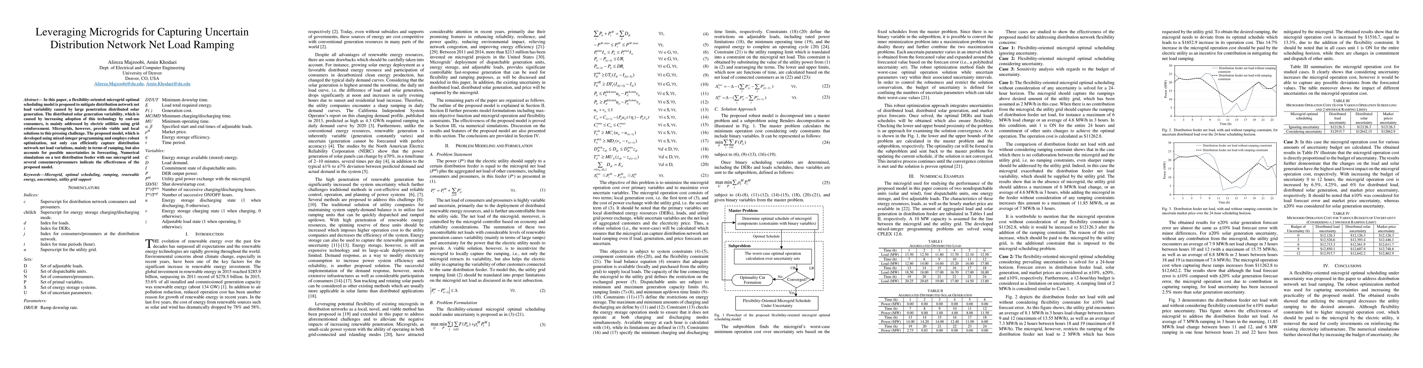 This paper proposes a microgrid optimal scheduling model using mixed-integer programming and robust optimization to mitigate net load variability and ramping caused by distributed solar generation. Numerical simulations demonstrate the model's effectiveness in addressing forecasting uncertainties and local variability in distribution networks.