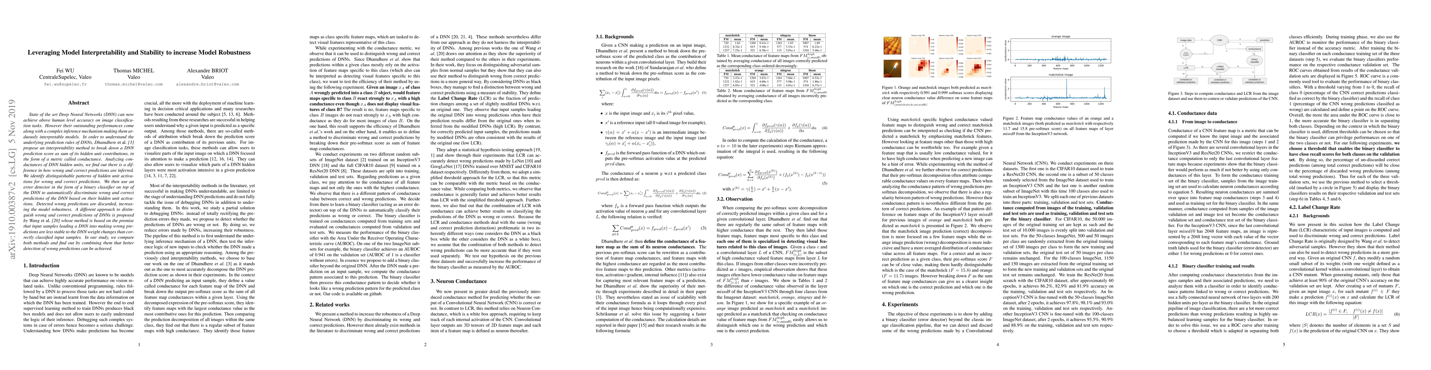 State of the art Deep Neural Networks (DNN) can now achieve above human level accuracy on image classification tasks. However their outstanding performances come along with a complex inference mechanism making them arduously interpretable models. In order to understand the underlying prediction rules of DNNs, Dhamdhere et al. propose an interpretability method to break down a DNN prediction score as sum of its hidden unit contributions, in the form of a metric called conductance. Analyzing conductances of DNN hidden units, we find out there is a difference in how wrong and correct predictions are inferred. We identify distinguishable patterns of hidden unit activations for wrong and correct predictions. We then use an error detector in the form of a binary classifier on top of the DNN to automatically discriminate wrong and correct predictions of the DNN based on their hidden unit activations. Detected wrong predictions are discarded, increasing the model robustness. A different approach to distinguish wrong and correct predictions of DNNs is proposed by Wang et al. whose method is based on the premise that input samples leading a DNN into making wrong predictions are less stable to the DNN weight changes than correctly classified input samples. In our study, we compare both methods and find out by combining them that better detection of wrong predictions can be achieved.
