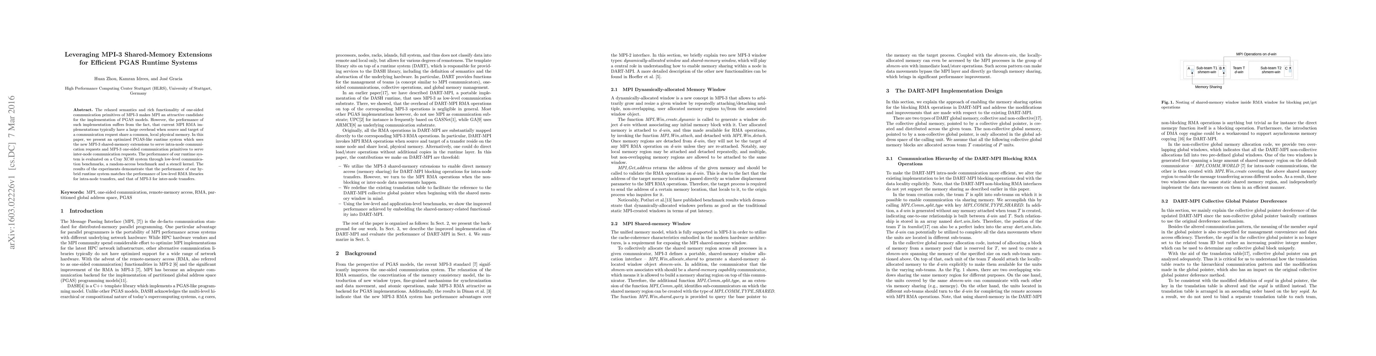 A novel optimization technique was applied to DASH, utilizing MPI-3 shared-memory extension for intra-node communications.