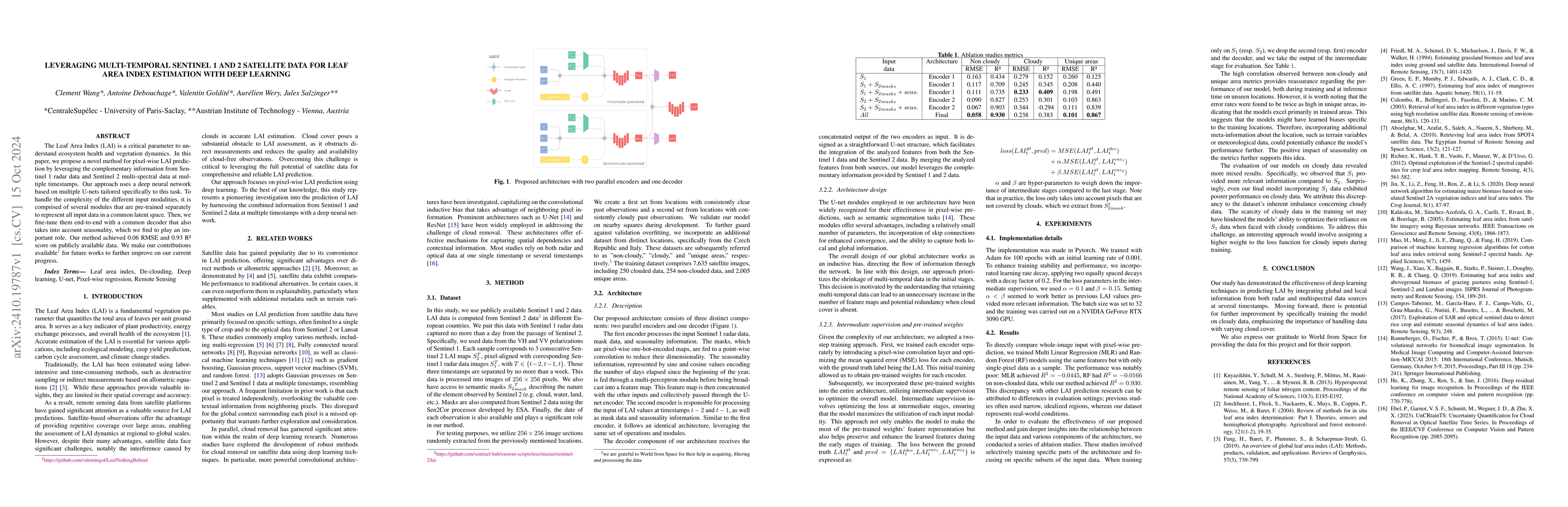 The Leaf Area Index (LAI) is a critical parameter to understand ecosystem health and vegetation dynamics. In this paper, we propose a novel method for pixel-wise LAI prediction by leveraging the complementary information from Sentinel 1 radar data and Sentinel 2 multi-spectral data at multiple timestamps. Our approach uses a deep neural network based on multiple U-nets tailored specifically to this task. To handle the complexity of the different input modalities, it is comprised of several modules that are pre-trained separately to represent all input data in a common latent space. Then, we fine-tune them end-to-end with a common decoder that also takes into account seasonality, which we find to play an important role. Our method achieved 0.06 RMSE and 0.93 R2 score on publicly available data. We make our contributions available at https://github.com/valentingol/LeafNothingBehind for future works to further improve on our current progress.
