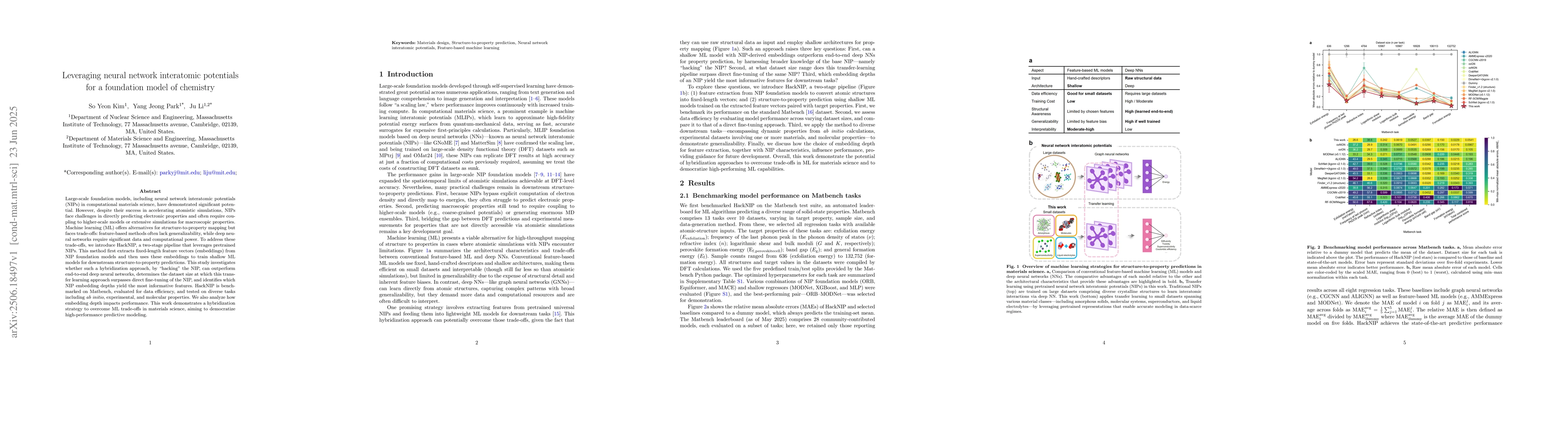 Large-scale foundation models, including neural network interatomic potentials (NIPs) in computational materials science, have demonstrated significant potential. However, despite their success in accelerating atomistic simulations, NIPs face challenges in directly predicting electronic properties and often require coupling to higher-scale models or extensive simulations for macroscopic properties. Machine learning (ML) offers alternatives for structure-to-property mapping but faces trade-offs: feature-based methods often lack generalizability, while deep neural networks require significant data and computational power. To address these trade-offs, we introduce HackNIP, a two-stage pipeline that leverages pretrained NIPs. This method first extracts fixed-length feature vectors (embeddings) from NIP foundation models and then uses these embeddings to train shallow ML models for downstream structure-to-property predictions. This study investigates whether such a hybridization approach, by ``hacking" the NIP, can outperform end-to-end deep neural networks, determines the dataset size at which this transfer learning approach surpasses direct fine-tuning of the NIP, and identifies which NIP embedding depths yield the most informative features. HackNIP is benchmarked on Matbench, evaluated for data efficiency, and tested on diverse tasks including \textit{ab initio}, experimental, and molecular properties. We also analyze how embedding depth impacts performance. This work demonstrates a hybridization strategy to overcome ML trade-offs in materials science, aiming to democratize high-performance predictive modeling.