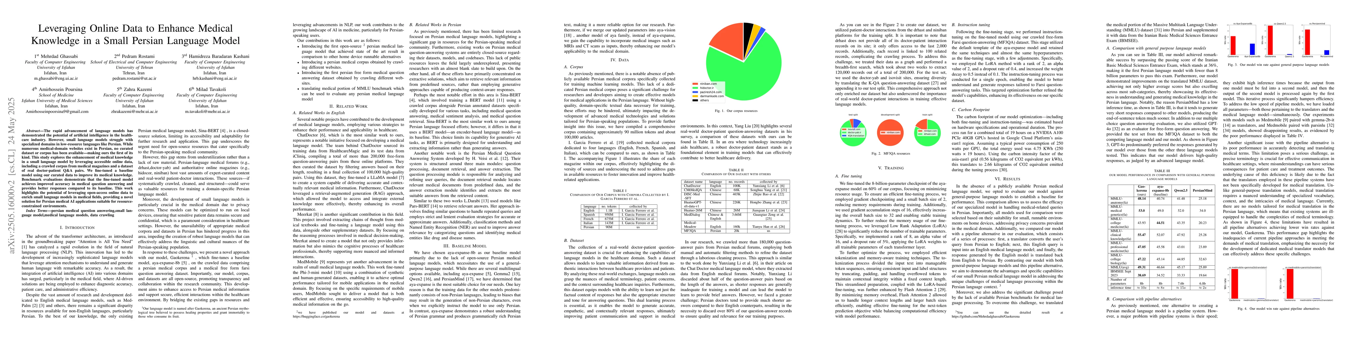 The study fine-tunes a baseline small Persian language model using a curated dataset of online medical data, including a corpus from medical magazines and real doctor-patient QA pairs.