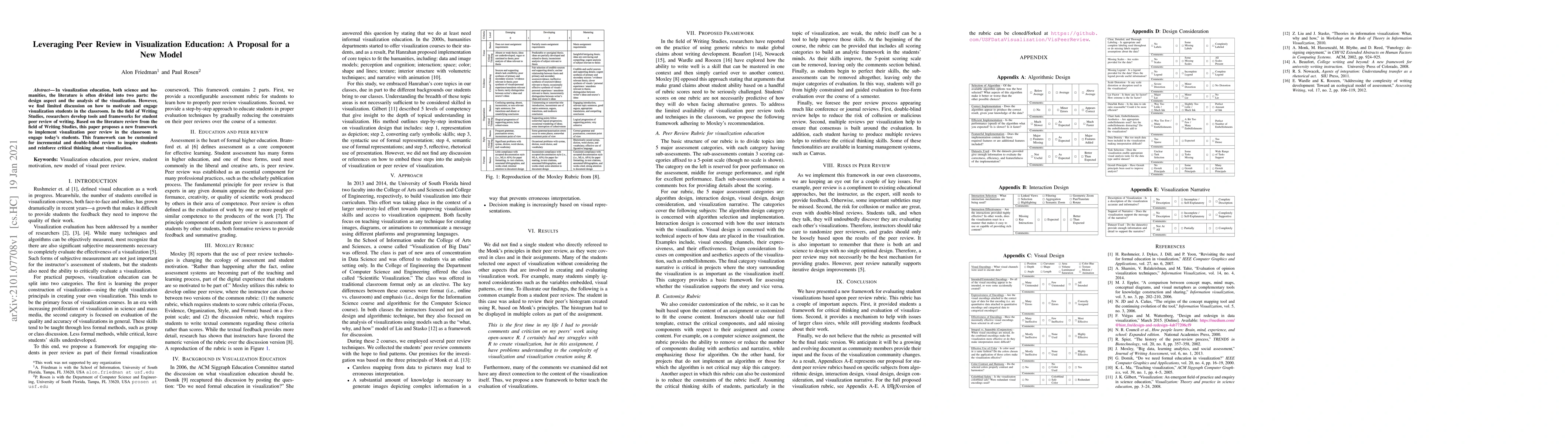 This paper proposes a new framework for visualization education that leverages peer review, inspired by Writing Studies, to enhance student engagement and critical thinking. The suggested model can be adapted for incremental and double-blind review processes to motivate students and improve their analytical skills in visualization.