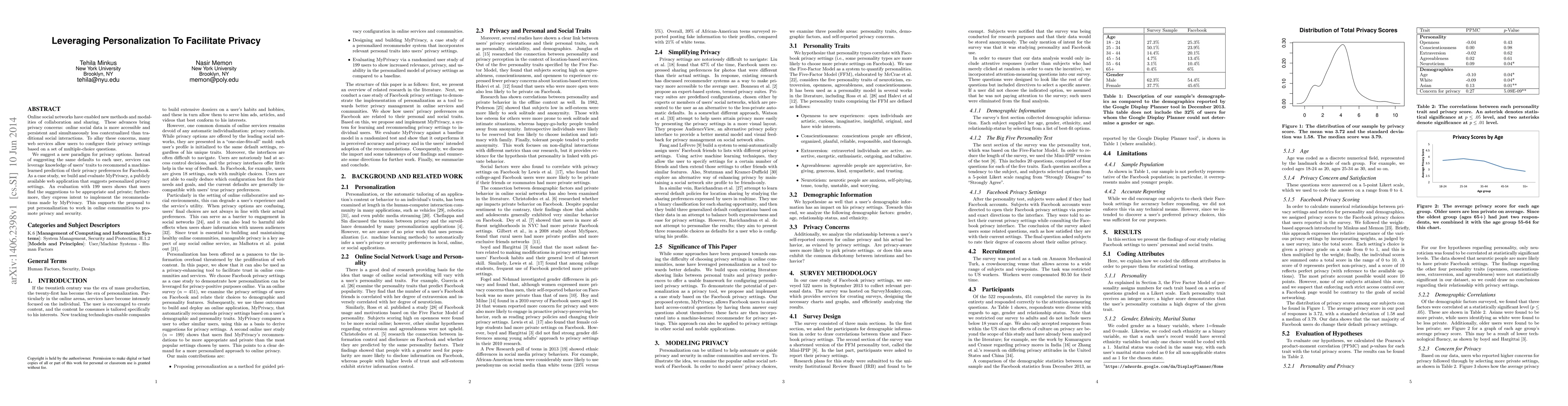A new web application called MyPrivacy uses machine learning to recommend personalized privacy settings for Facebook users, who find the suggestions appropriate and private. This study supports using personalization to promote online privacy and security.