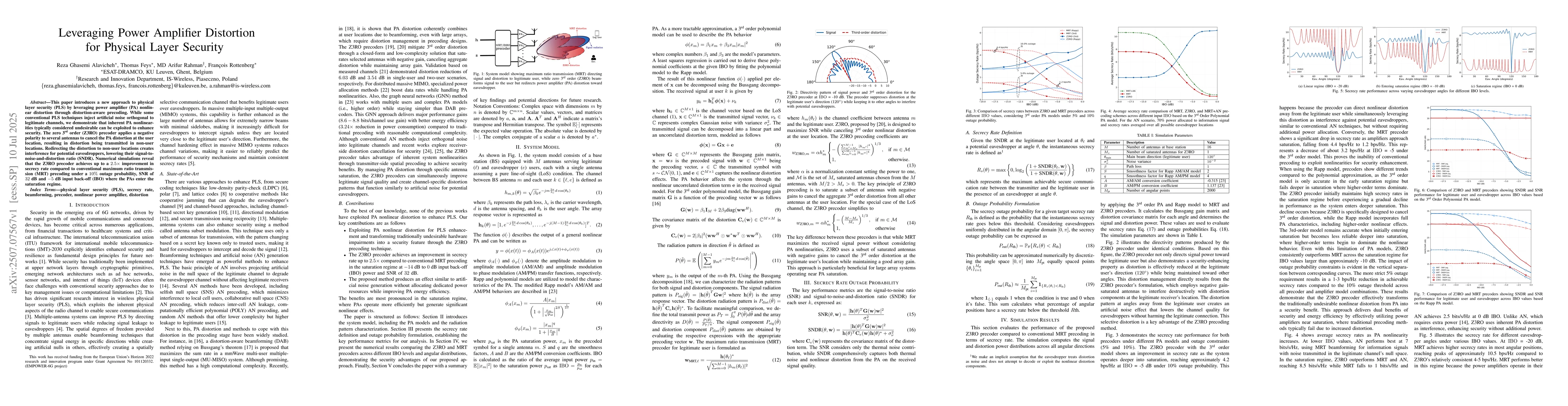 This paper introduces a new approach to physical layer security (PLS) by leveraging power amplifier (PA) nonlinear distortion through distortion-aware precoding. While some conventional PLS techniques inject artificial noise orthogonal to legitimate channels, we demonstrate that inherent PA nonlinearities typically considered undesirable can be exploited to enhance security. The zero 3rd order (Z3RO) precoder applies a negative polarity to several antennas to cancel the PA distortion at the user location, resulting in distortion being transmitted in non-user locations. Redirecting the distortion to non-user locations creates interference for potential eavesdroppers, lowering their signal-to-noise-and-distortion ratio (SNDR). Numerical simulations reveal that the Z3RO precoder achieves up to a $2.5\times$ improvement in secrecy rate compared to conventional maximum ratio transmission (MRT) precoding under a $10\%$ outage probability, SNR of $32$ dB and $-5$ dB input back-off (IBO) where the PAs enter the saturation regime.
