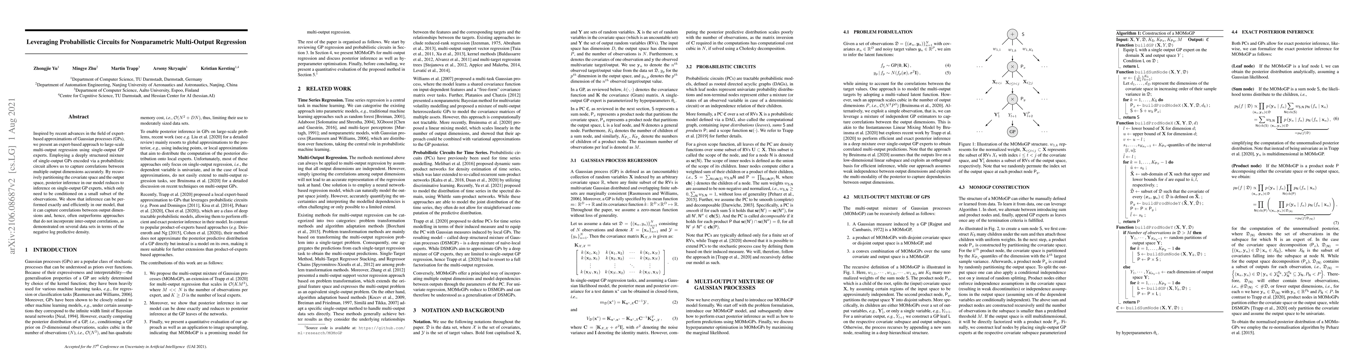 This paper proposes an expert-based approach for large-scale multi-output regression using a mixture of single-output Gaussian processes encoded via probabilistic circuits. The method efficiently captures correlations between multiple output dimensions and outperforms traditional methods, as shown by improved negative log predictive density on various datasets.
