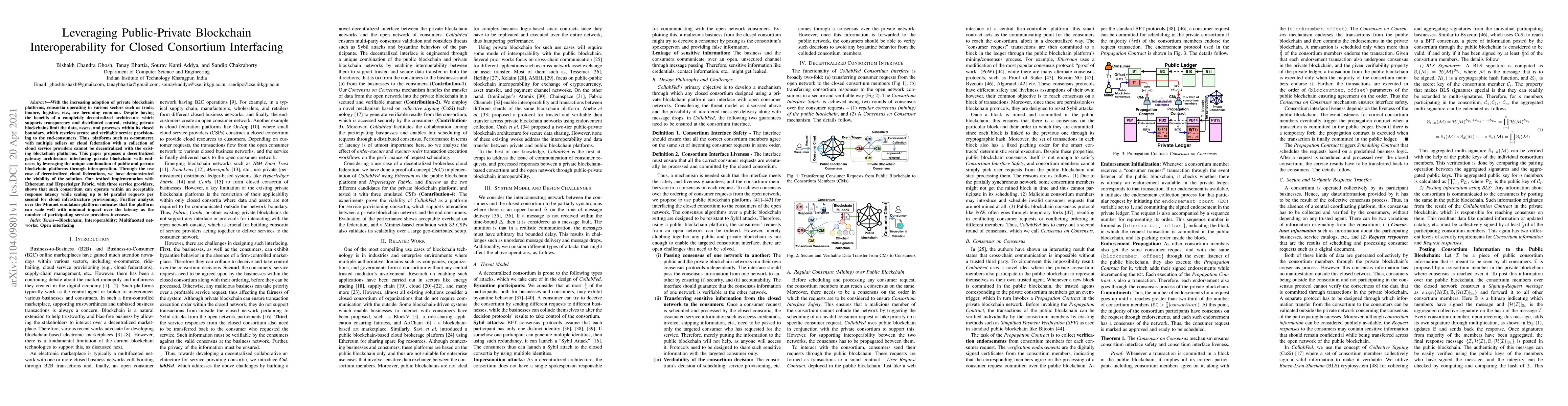 This paper proposes a decentralized gateway architecture to enable interoperability between public and private blockchains, allowing closed consortiums to securely interface with end-users. Through a testbed implementation using Ethereum and Hyperledger Fabric, the authors demonstrate scalability and acceptable response times for cloud infrastructure provisioning.
