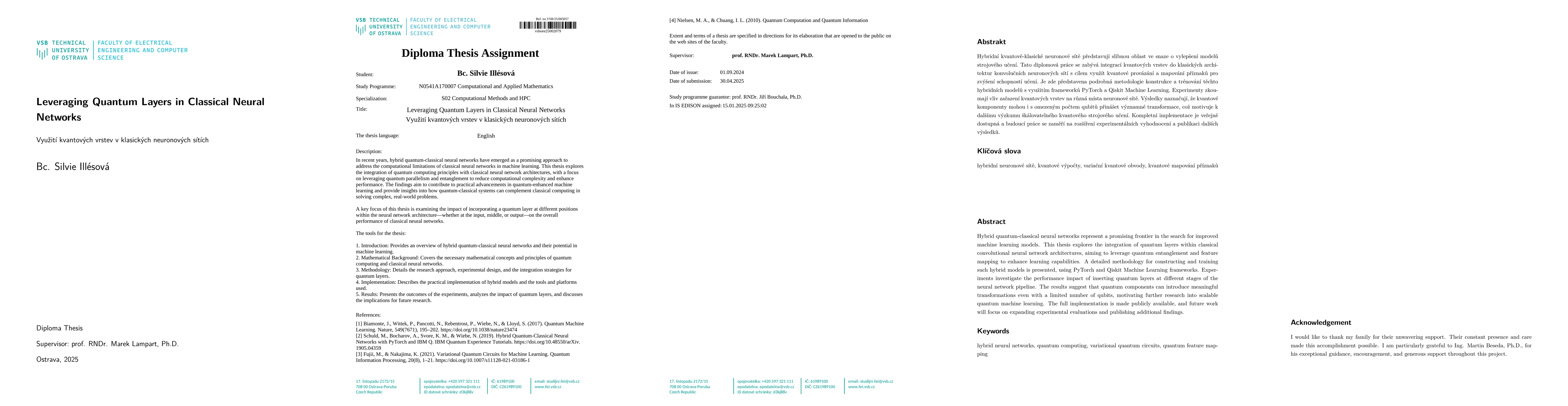 Hybrid quantum-classical neural networks represent a promising frontier in the search for improved machine learning models. This thesis explores the integration of quantum layers within classical convolutional neural network architectures, aiming to leverage quantum entanglement and feature mapping to enhance learning capabilities. A detailed methodology for constructing and training such hybrid models is presented, using PyTorch and Qiskit Machine Learning frameworks. Experiments investigate the performance impact of inserting quantum layers at different stages of the neural network pipeline. The results suggest that quantum components can introduce meaningful transformations even with a limited number of qubits, motivating further research into scalable quantum machine learning. The full implementation is made publicly available, and future work will focus on expanding experimental evaluations and publishing additional findings.