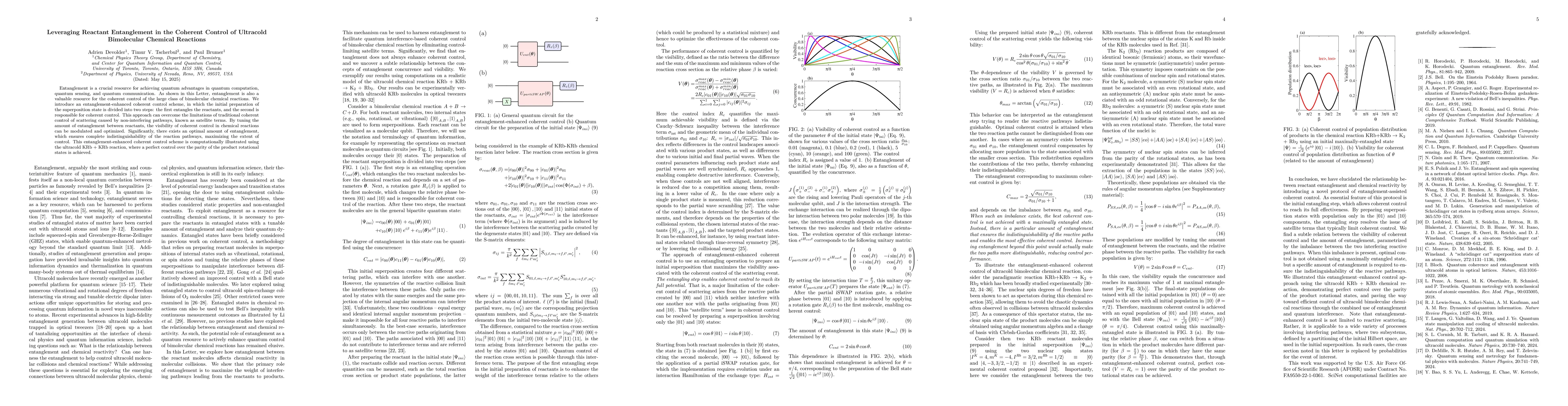The research introduces an entanglement-enhanced coherent control scheme for bimolecular chemical reactions, dividing the initial superposition state preparation into two steps: entangling reactants followed by coherent control tuning.