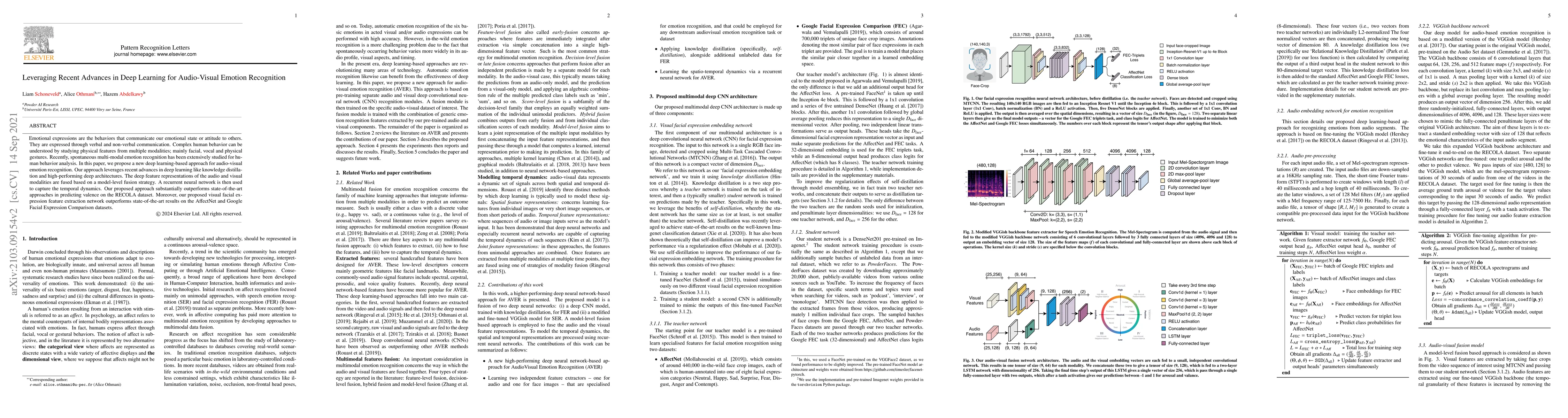 This paper proposes a deep learning-based approach for audio-visual emotion recognition, leveraging knowledge distillation and advanced deep architectures. The method fuses deep features from audio and visual modalities and uses a recurrent neural network to capture temporal dynamics, achieving superior performance on emotion prediction and facial expression recognition datasets.