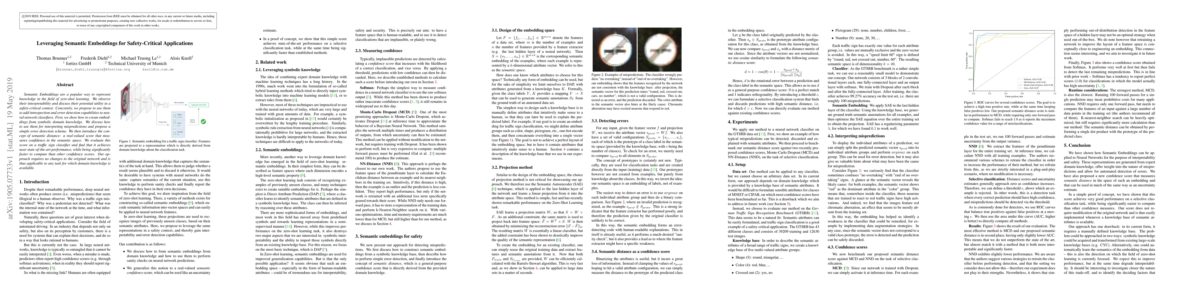 Researchers propose using semantic embeddings to improve safety-critical applications by adding error detection capabilities to neural networks. Their approach achieves near state-of-the-art performance while being faster to compute than other confidence scores.