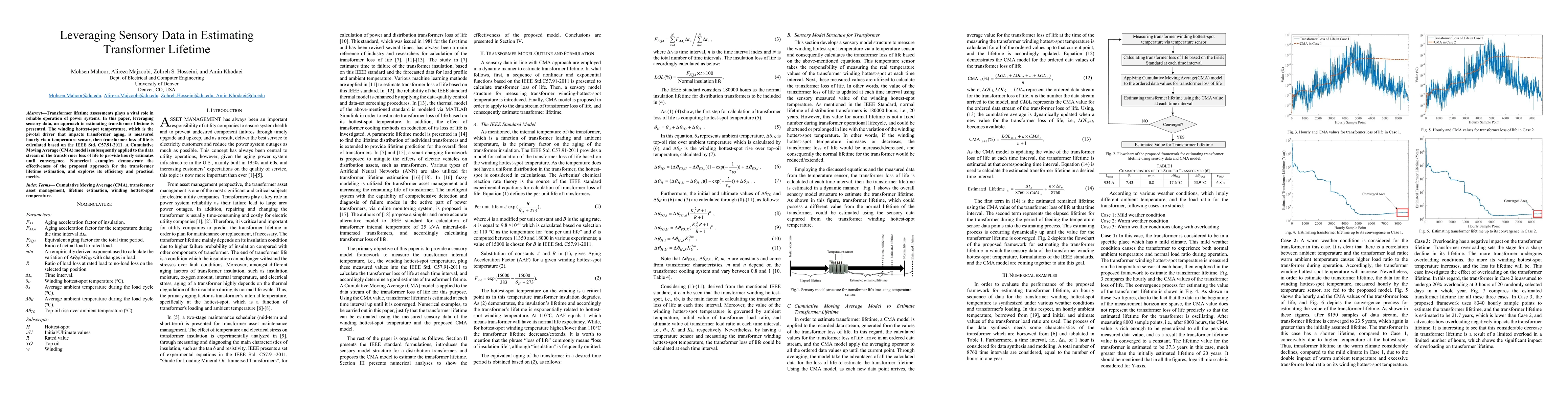 Transformer lifetime assessments plays a vital role in reliable operation of power systems. In this paper, leveraging sensory data, an approach in estimating transformer lifetime is presented. The winding hottest-spot temperature, which is the pivotal driver that impacts transformer aging, is measured hourly via a temperature sensor, then transformer loss of life is calculated based on the IEEE Std. C57.91-2011. A Cumulative Moving Average (CMA) model is subsequently applied to the data stream of the transformer loss of life to provide hourly estimates until convergence. Numerical examples demonstrate the effectiveness of the proposed approach for the transformer lifetime estimation, and explores its efficiency and practical merits.