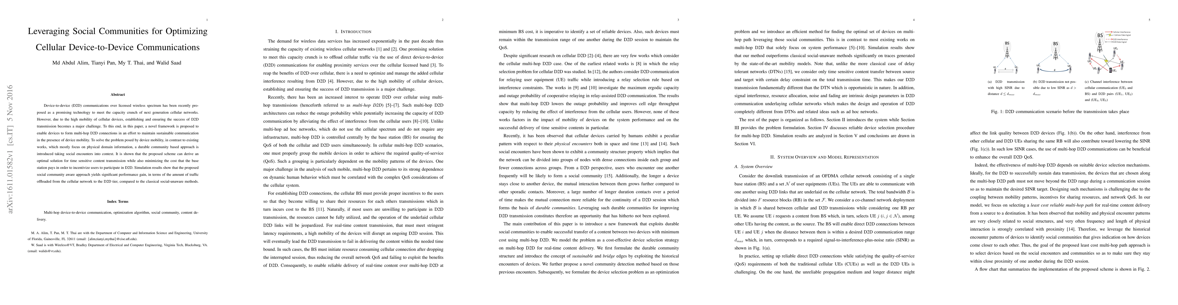 This paper proposes a novel framework leveraging social communities to optimize device-to-device (D2D) communications over the licensed spectrum, addressing the challenge of high device mobility. The approach uses social encounters to form multi-hop D2D connections, achieving optimal time-sensitive content transmission while minimizing base station costs. Simulation results demonstrate significant performance gains in traffic offloading compared to traditional methods.