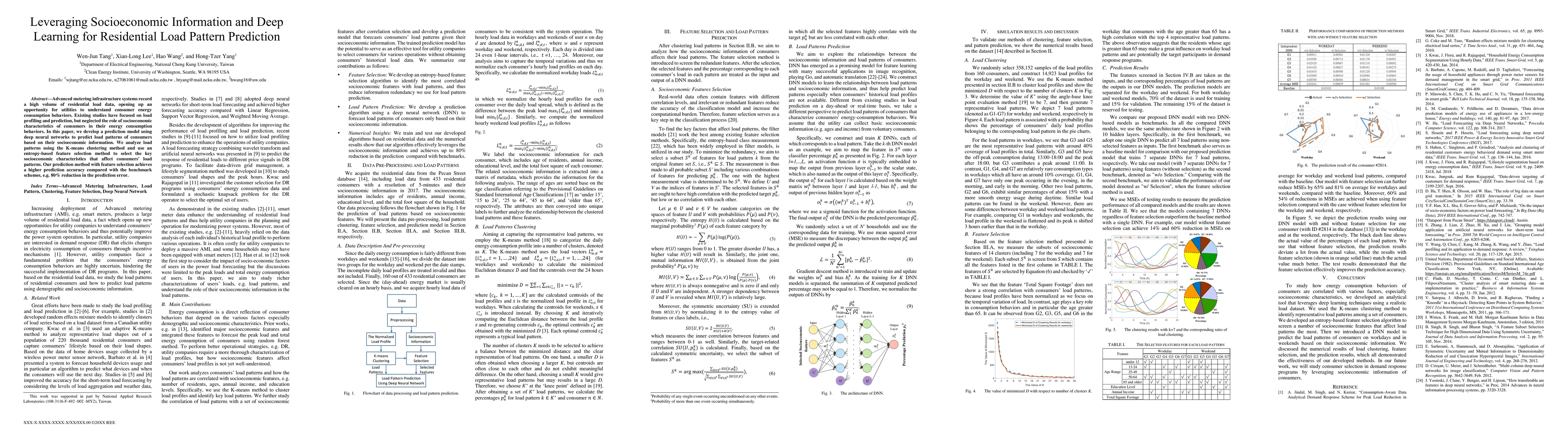 This paper develops a deep learning model to predict residential load patterns by incorporating socioeconomic information, achieving higher accuracy through K-means clustering and entropy-based feature selection, reducing prediction error by 80% compared to benchmark methods.