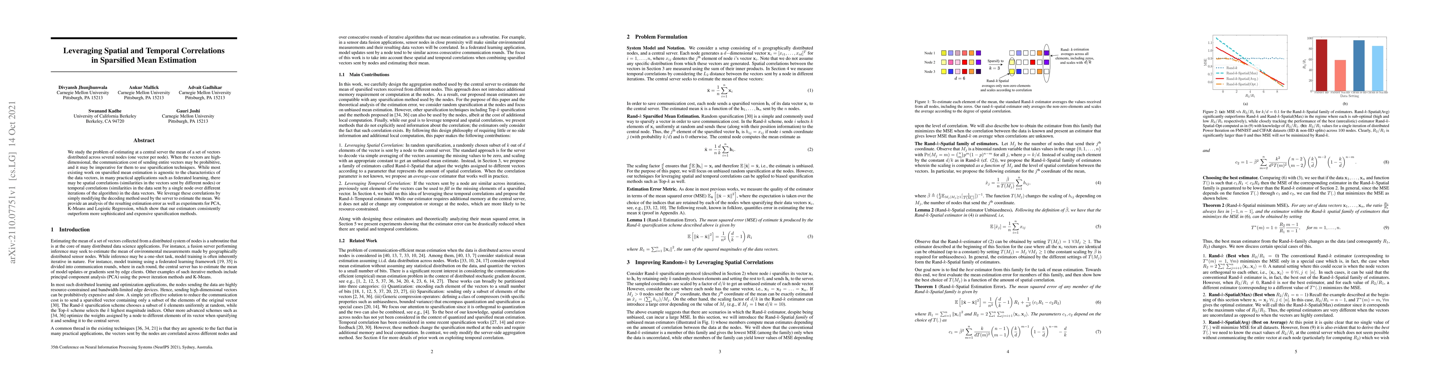 This paper proposes a method to improve sparsified mean estimation by leveraging spatial and temporal correlations in data vectors. It shows that the proposed method consistently outperforms more expensive methods in experiments with PCA, K-Means, and Logistic Regression.