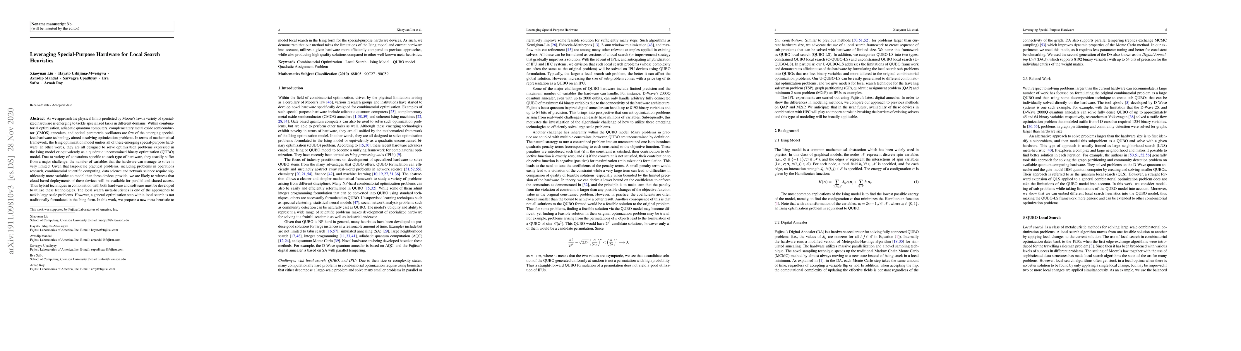 Researchers developed a new meta-heuristic to solve large-scale optimization problems using special-purpose hardware like adiabatic quantum computers, leveraging the Ising model to overcome hardware limitations.