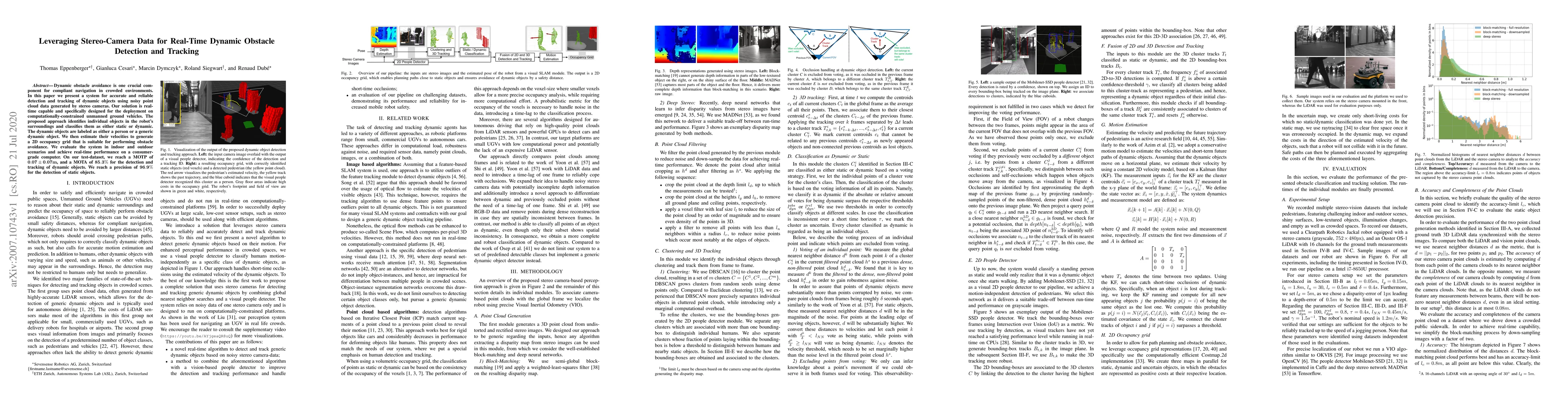 Dynamic obstacle avoidance is one crucial component for compliant navigation in crowded environments. In this paper we present a system for accurate and reliable detection and tracking of dynamic objects using noisy point cloud data generated by stereo cameras. Our solution is real-time capable and specifically designed for the deployment on computationally-constrained unmanned ground vehicles. The proposed approach identifies individual objects in the robot's surroundings and classifies them as either static or dynamic. The dynamic objects are labeled as either a person or a generic dynamic object. We then estimate their velocities to generate a 2D occupancy grid that is suitable for performing obstacle avoidance. We evaluate the system in indoor and outdoor scenarios and achieve real-time performance on a consumer-grade computer. On our test-dataset, we reach a MOTP of $0.07 \pm 0.07m$, and a MOTA of $85.3\%$ for the detection and tracking of dynamic objects. We reach a precision of $96.9\%$ for the detection of static objects.