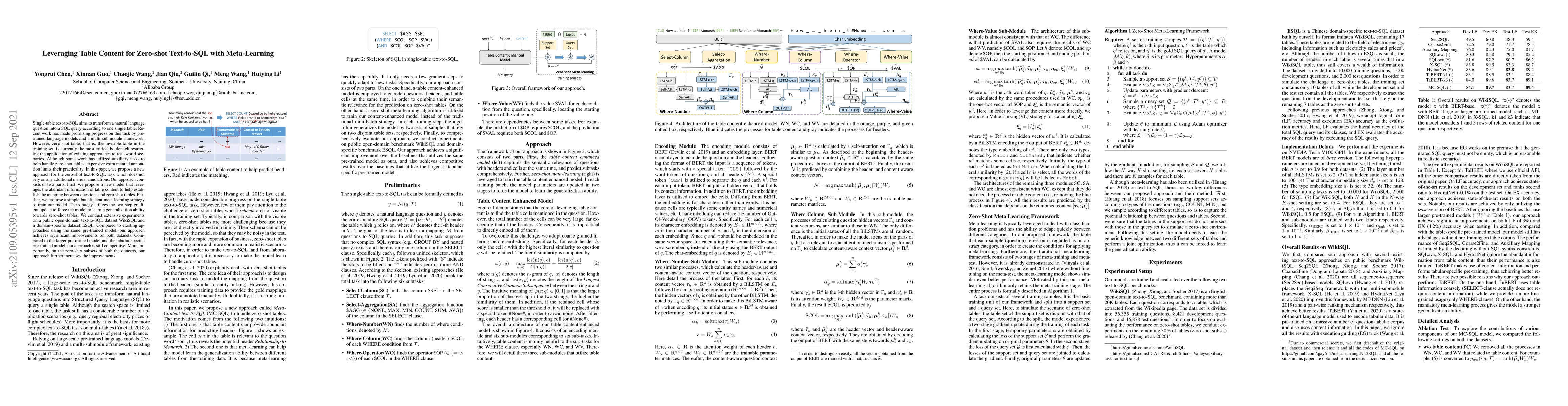 This paper proposes a novel meta-learning approach to tackle zero-shot text-to-SQL without requiring additional manual annotations. It leverages table content and a two-step gradient update for meta-learning to enhance generalization to unseen tables, achieving significant improvements on WikiSQL and ESQL datasets.