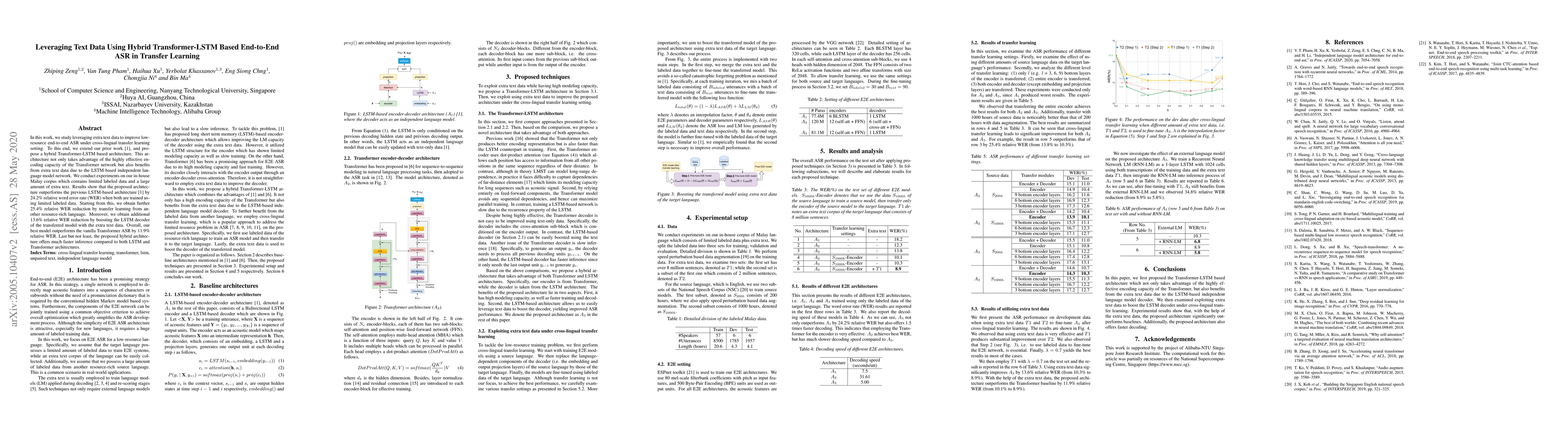 This paper proposes a hybrid Transformer-LSTM architecture to enhance low-resource end-to-end ASR in a cross-lingual transfer learning setting, achieving a 24.2% relative WER reduction over a previous LSTM-based model, and further improvements through transfer learning and extra text data.