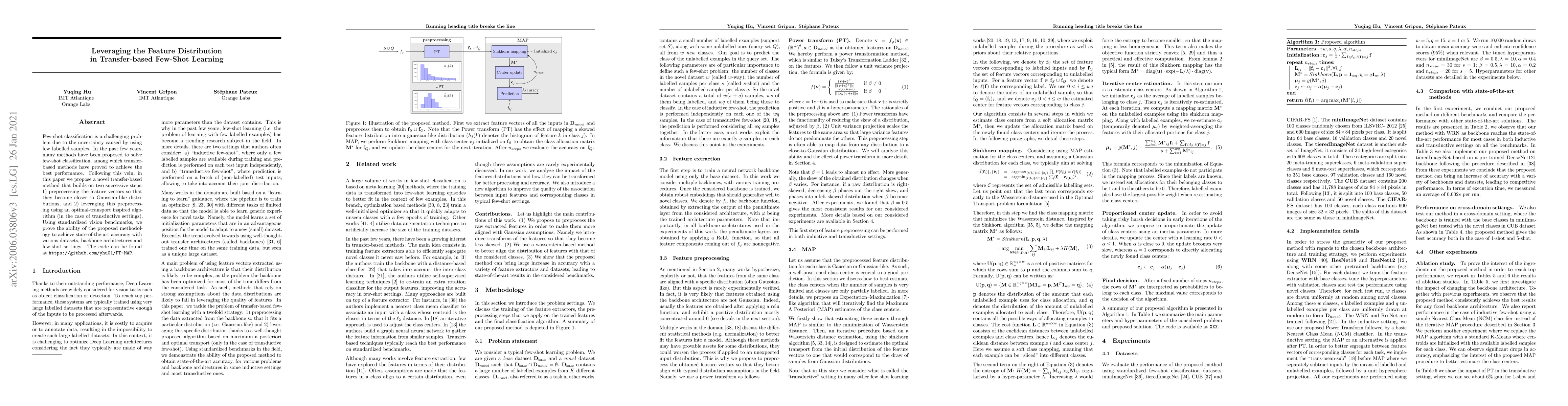 Few-shot classification is a challenging problem due to the uncertainty caused by using few labelled samples. In the past few years, many methods have been proposed to solve few-shot classification, among which transfer-based methods have proved to achieve the best performance. Following this vein, in this paper we propose a novel transfer-based method that builds on two successive steps: 1) preprocessing the feature vectors so that they become closer to Gaussian-like distributions, and 2) leveraging this preprocessing using an optimal-transport inspired algorithm (in the case of transductive settings). Using standardized vision benchmarks, we prove the ability of the proposed methodology to achieve state-of-the-art accuracy with various datasets, backbone architectures and few-shot settings.