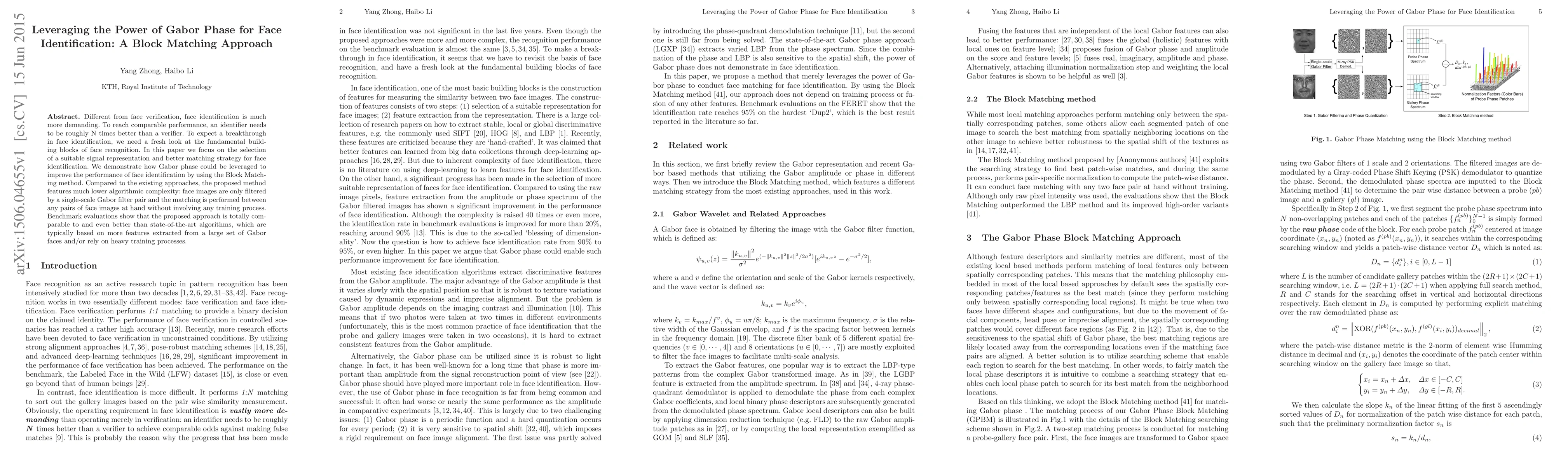 Different from face verification, face identification is much more demanding. To reach comparable performance, an identifier needs to be roughly N times better than a verifier. To expect a breakthrough in face identification, we need a fresh look at the fundamental building blocks of face recognition. In this paper we focus on the selection of a suitable signal representation and better matching strategy for face identification. We demonstrate how Gabor phase could be leveraged to improve the performance of face identification by using the Block Matching method. Compared to the existing approaches, the proposed method features much lower algorithmic complexity: face images are only filtered by a single-scale Gabor filter pair and the matching is performed between any pairs of face images at hand without involving any training process. Benchmark evaluations show that the proposed approach is totally comparable to and even better than state-of-the-art algorithms, which are typically based on more features extracted from a large set of Gabor faces and/or rely on heavy training processes.
