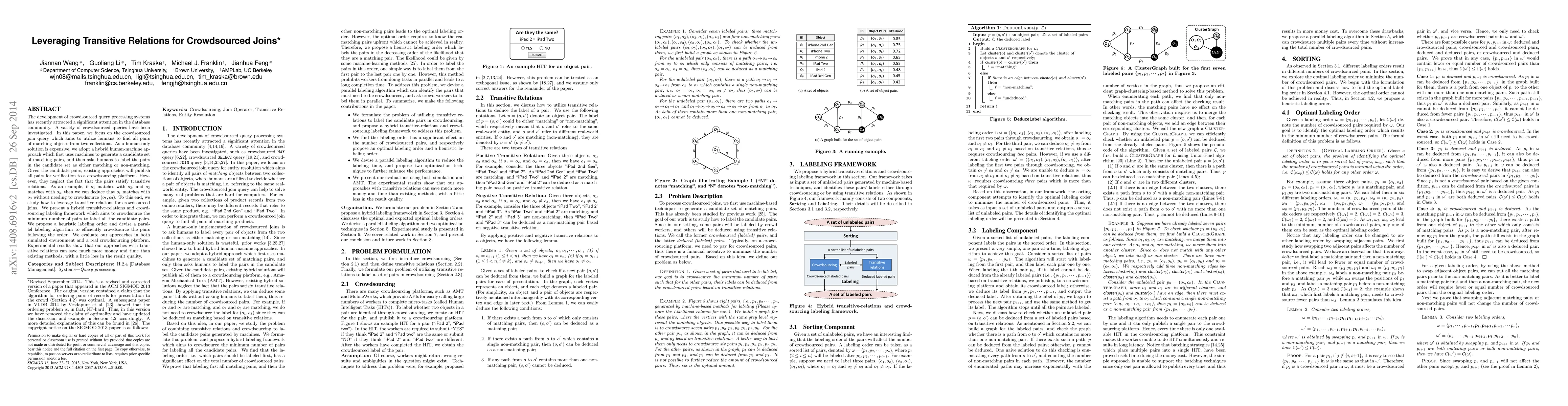 This paper proposes a hybrid approach leveraging transitive relations to crowdsource join queries, aiming to minimize human labeling effort. By utilizing machine-generated candidate pairs and transitive logic, the method significantly reduces the number of human-verified pairs, saving time and costs while maintaining result quality.