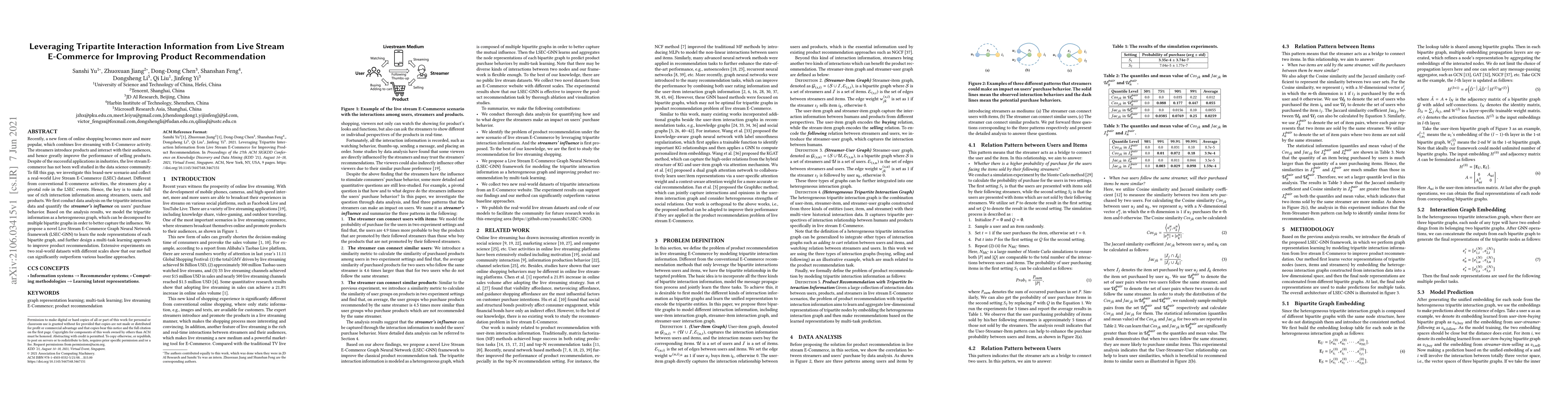 This paper explores leveraging tripartite interaction data from live stream E-commerce to enhance product recommendation. It proposes a novel LSEC-GNN framework to model the interactions among streamers, users, and products, and demonstrates significant improvements over baseline methods in recommendation accuracy.