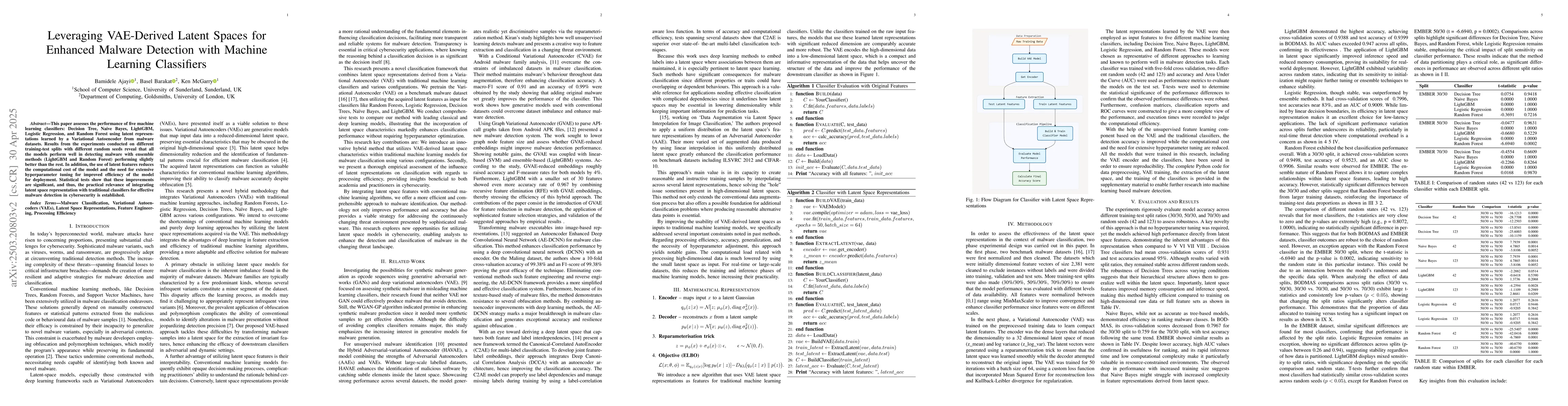 Using Variational Autoencoders to represent malware, machine learning classifiers outperform traditional methods with ensemble methods showing the best results. Integration of latent space representation improves efficiency for effective malware detection in cybersecurity.