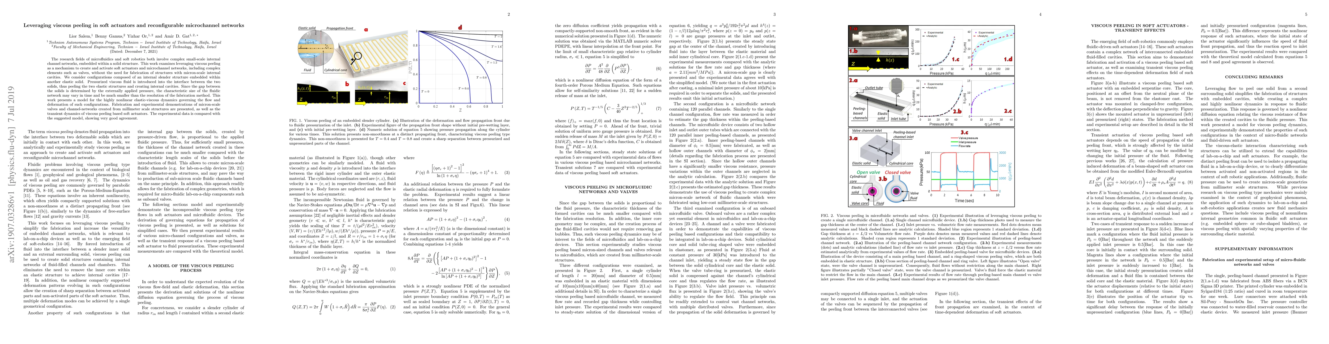 This paper explores using viscous peeling to create and activate soft actuators and reconfigurable microchannel networks, demonstrating the formation of micron-scale valves and channels from millimeter-scale structures without requiring micron-scale fabrication. The model for the elastic-viscous dynamics shows good agreement with experimental results.