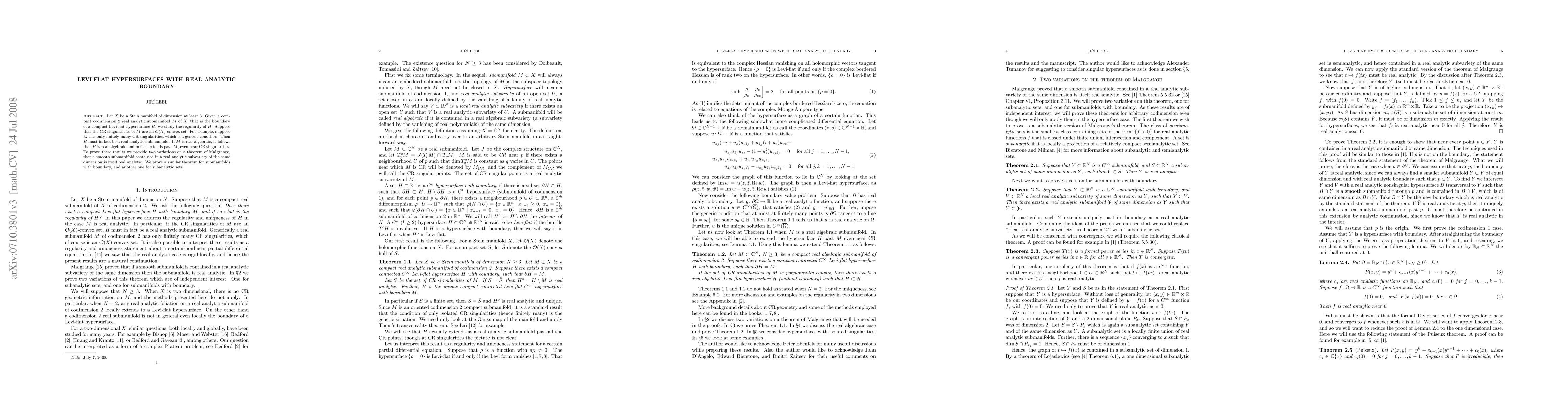 This paper investigates the regularity of Levi-flat hypersurfaces $H$ in Stein manifolds $X$ with real analytic boundaries $M$, showing that if $M$ has only finitely many CR singularities, $H$ is real analytic. Additionally, if $M$ is real algebraic, $H$ extends past $M$ and remains real algebraic, even near CR singularities. The proofs leverage adaptations of Malgrange's theorem for submanifolds and subanalytic sets.