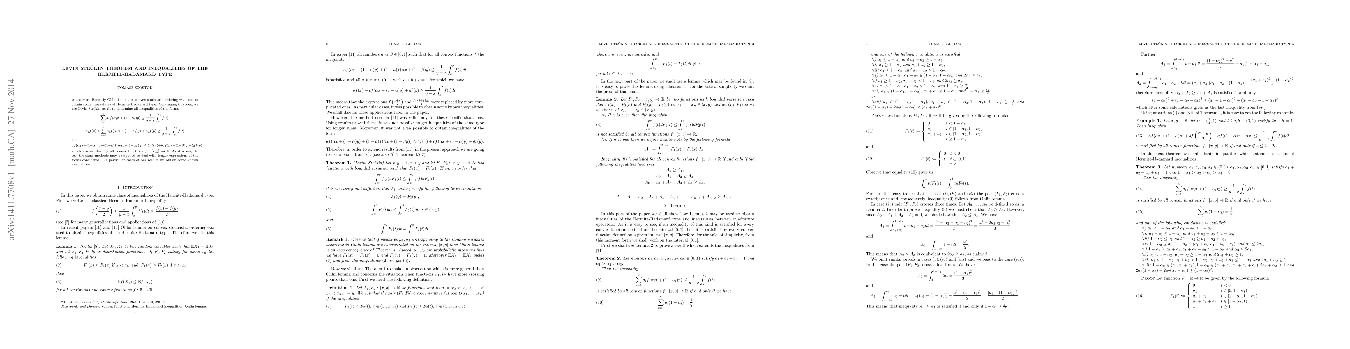 Recently Ohlin lemma on convex stochastic ordering was used to obtain some inequalities of Hermite-Hadamard type. Continuing this idea, we use Levin-Ste\v{c}kin result to determine all inequalities of the forms: $$\sum_{i=1}^3a_if(\alpha_ix+(1-\alpha_i)y)\leq \frac{1}{y-x}\int_{x}^yf(t),$$ $$a_1f(x)+\sum_{i=2}^3a_if(\alpha_ix+(1-\alpha_i)y)+a_4f(y)\geq \frac{1}{y-x}\int_{x}^yf(t)$$ and $$af(\alpha_1x+(1-\alpha_1)y)+(1-a)f(\alpha_2x+(1-\alpha_2)y)\leq b_1f(x)+b_2f(\beta x+(1-\beta)y)+b_3f(y)$$ which are satisfied by all convex functions $f:[x,y]\to{\mathbb R}.$ As it is easy to see, the same methods may be applied to deal with longer expressions of the forms considered. As particular cases of our results we obtain some known inequalities.